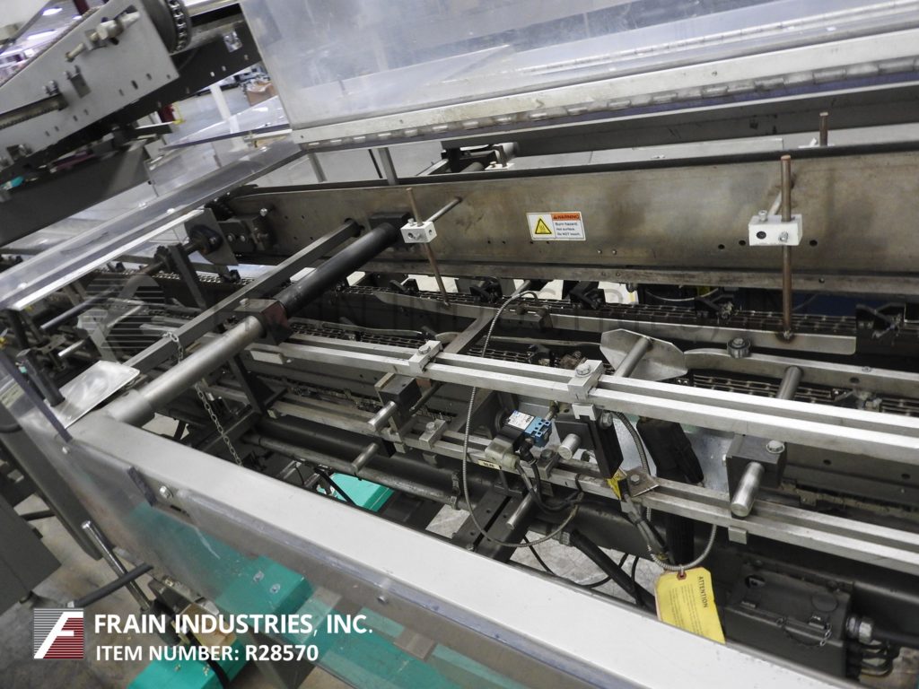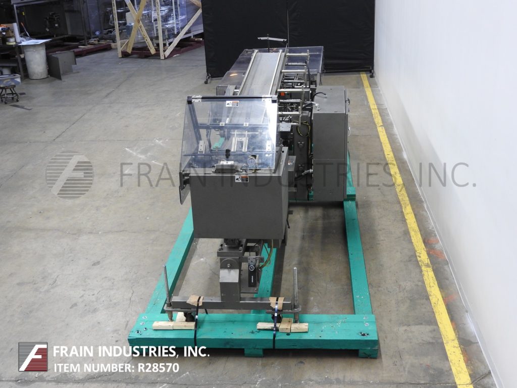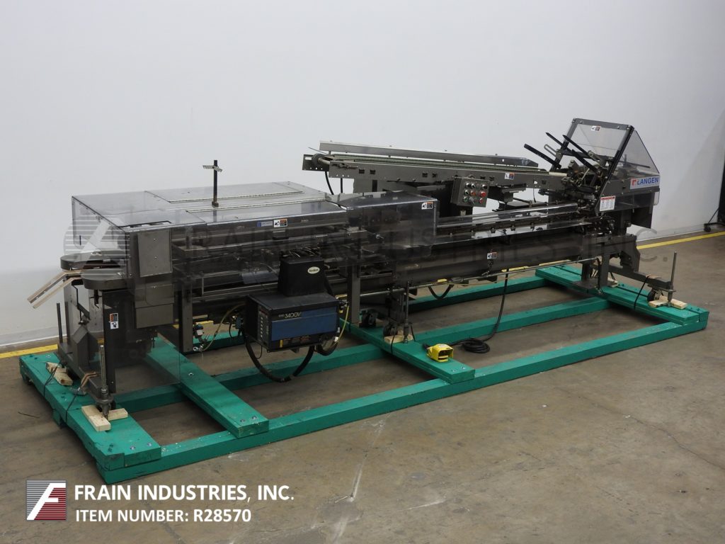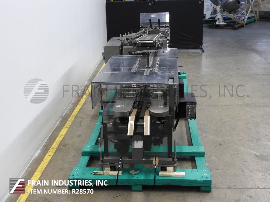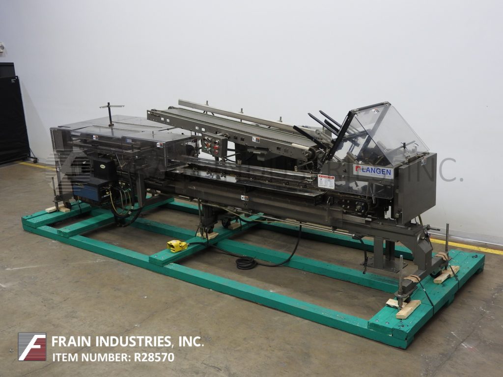 返回所有设备朗根,B1M型,半自动,卧式,连续运动,热熔胶盒。每分钟10到120箱-取决于材料,应用,机器配置和操作熟练度。纸箱尺寸范围:1¾“至7”长度;½"至3"宽度;深度3¾“至14”。配备(4)可调链设置在18"中心2"宽x 1-1/8"高耳。96"长延长空白纸盒杂志与2头旋转吸盘挑选和地方,60"长的手负荷部分,顶部按住,诺德森热熔胶系统和压缩部分。控制板上有真空泵控制器,jog, run, glue和container feed开/关开关,启动,停止和e-stop按钮。安装在基础框架与脚轮,水平腿和安全防护。