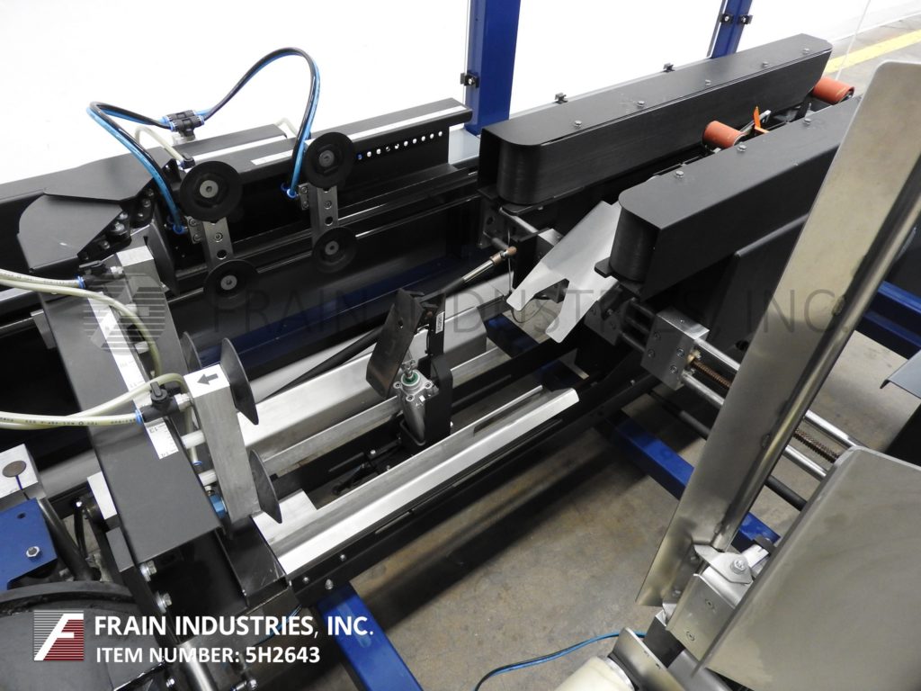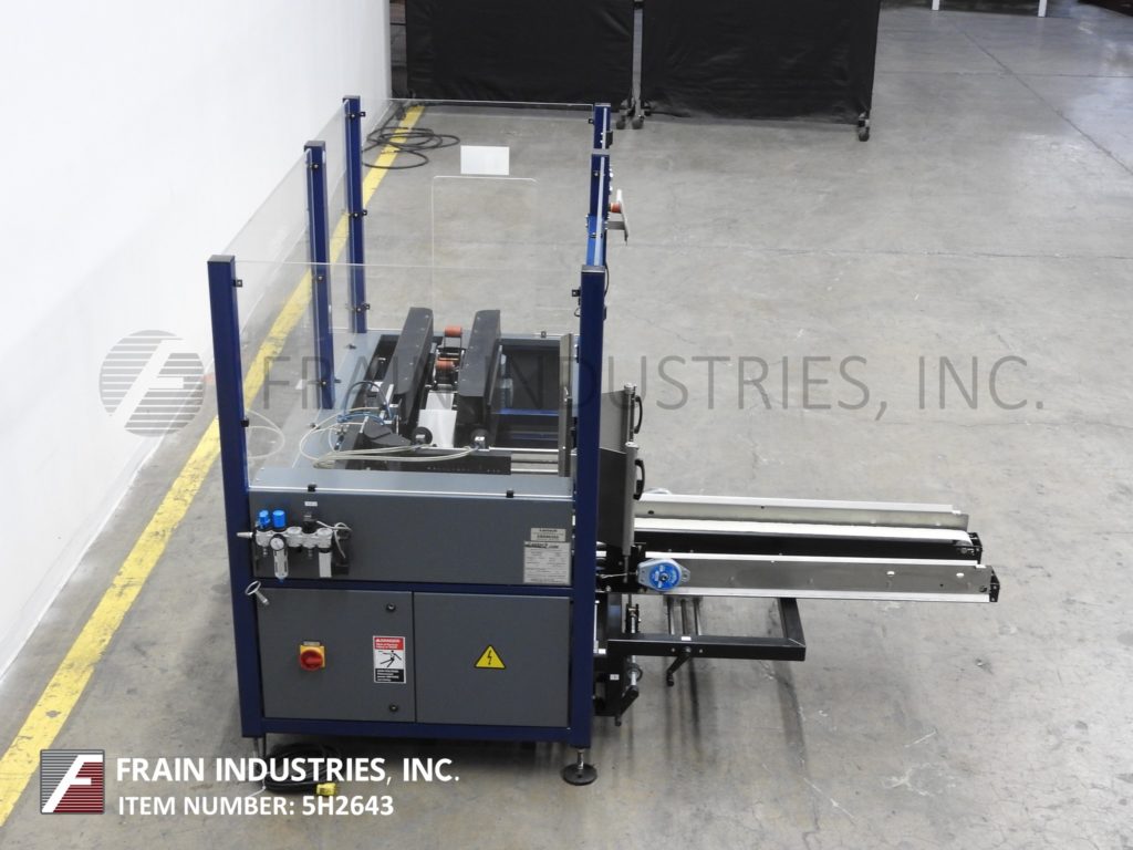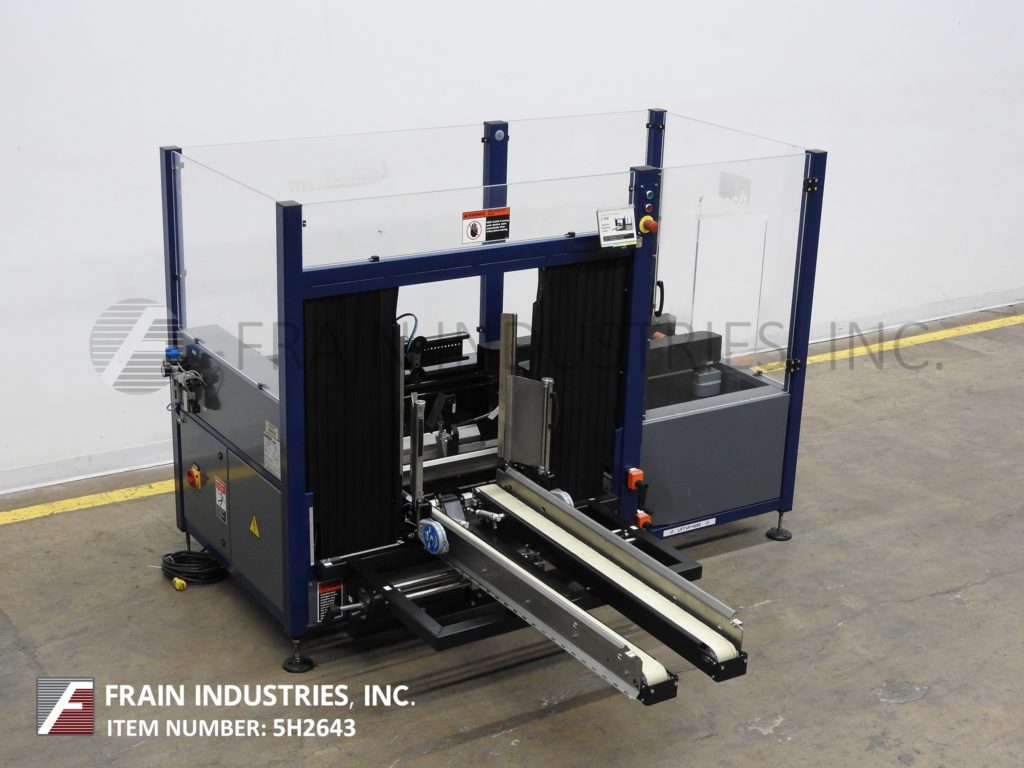 返回所有设备蓝泰克,C300型,自动装箱,底部封口机。根据材料、应用和机器配置,每分钟额定1 - 10箱。外壳尺寸范围:长度7-7/8"至19-5/8";宽度为5-7/8"至13- 3 / 4 ";5-7/8“到20-¾”的高度。配备48"长案例杂志,吸盘案例选择的地方,双32"长x 4"宽侧皮带案例辅助传送带与25"放电高度和2"宽底部磁带头。安装在底座上,支架高度可调。