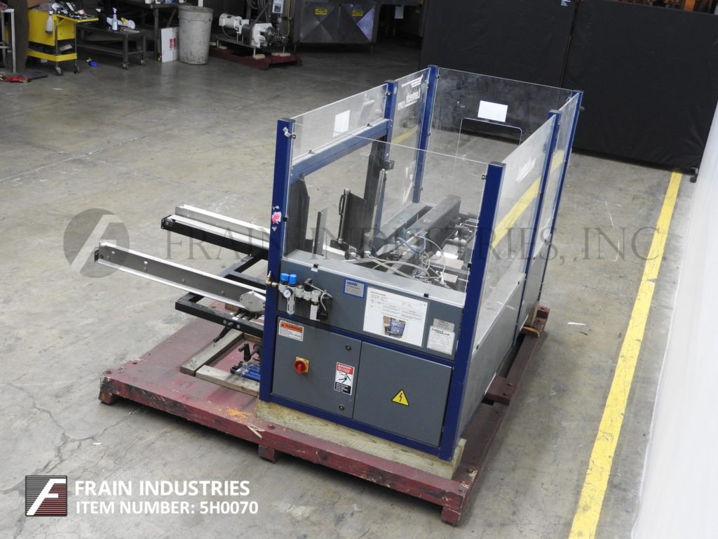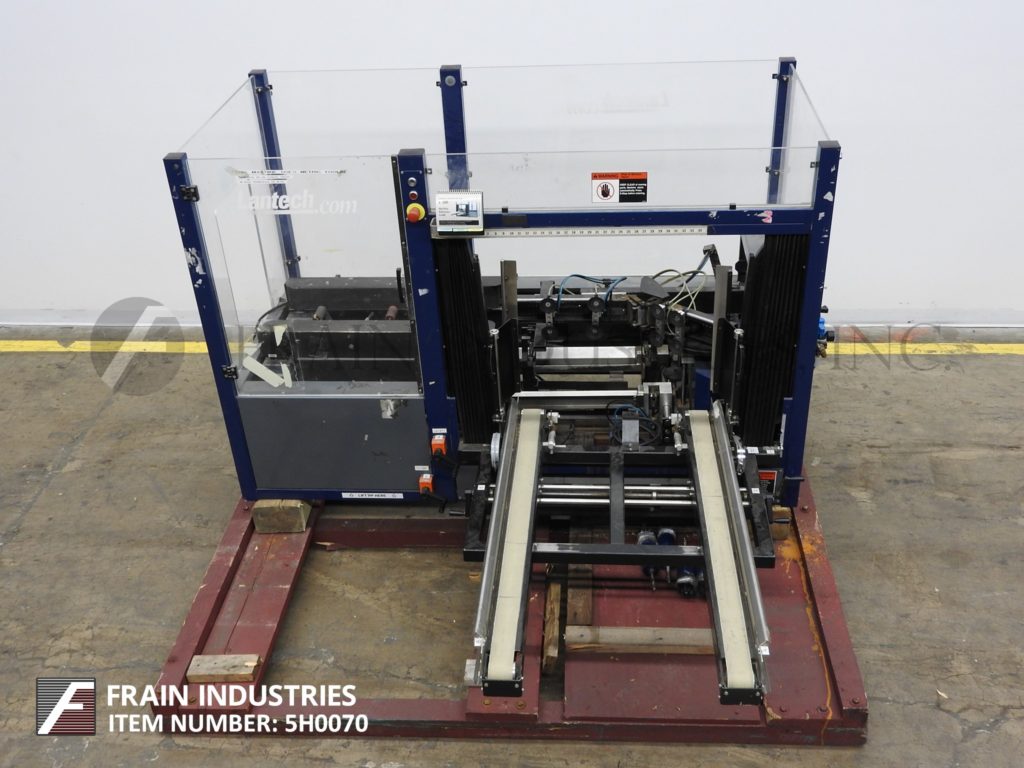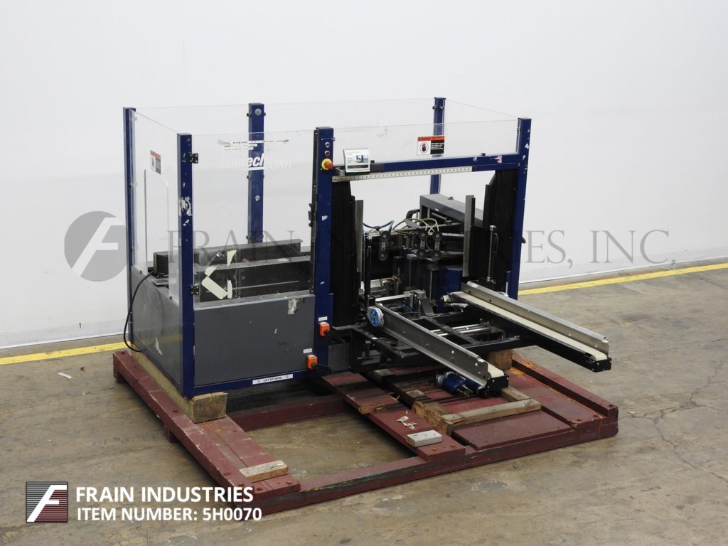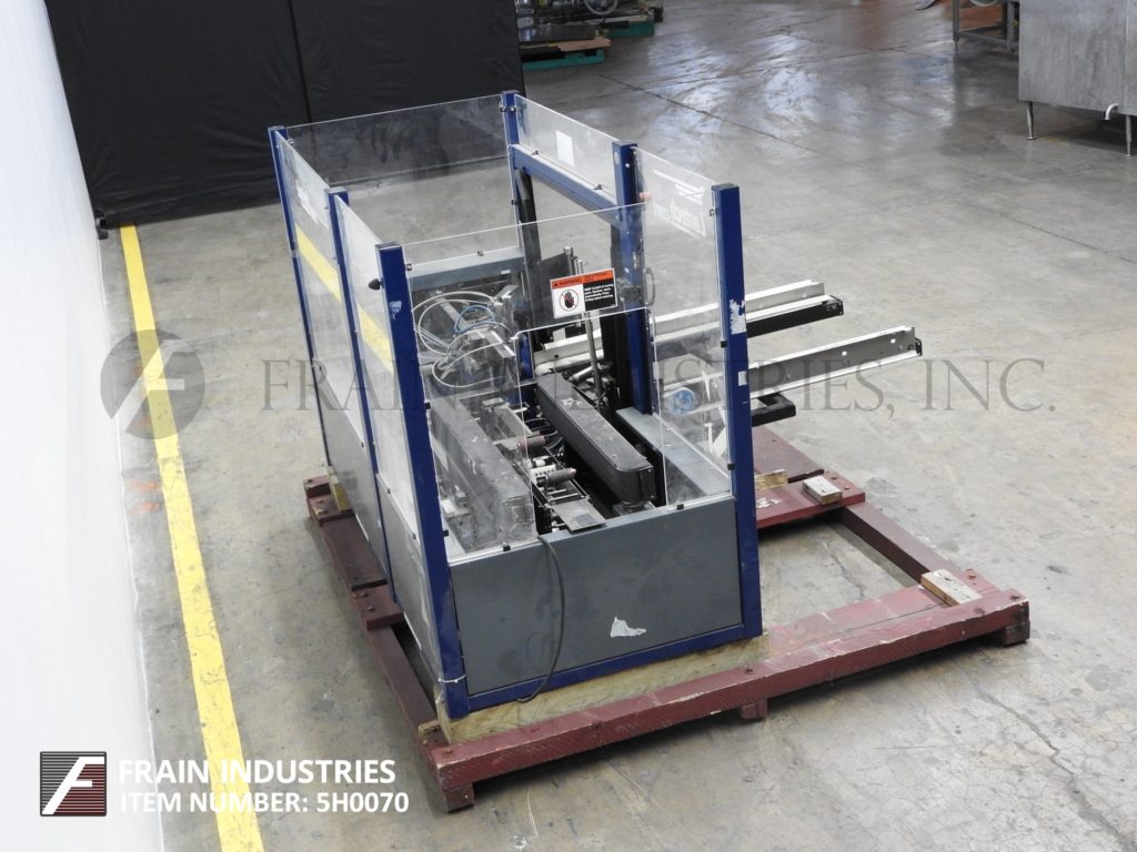 返回所有设备蓝泰克,C300型,自动装箱,底部封口机。根据材料、应用和机器配置,每分钟额定1 - 10箱。外壳尺寸范围:长度7-7/8"至19-5/8";宽度为5-7/8"至13- 3 / 4 ";5-7/8“到20-¾”的高度。配备了53“长的情况下杂志,(6)吸盘情况下pickin -place,双34“长x 4”宽边皮带情况辅助传送带与25“放电高度和2“宽底部磁带头。安装在底座上,支架高度可调。