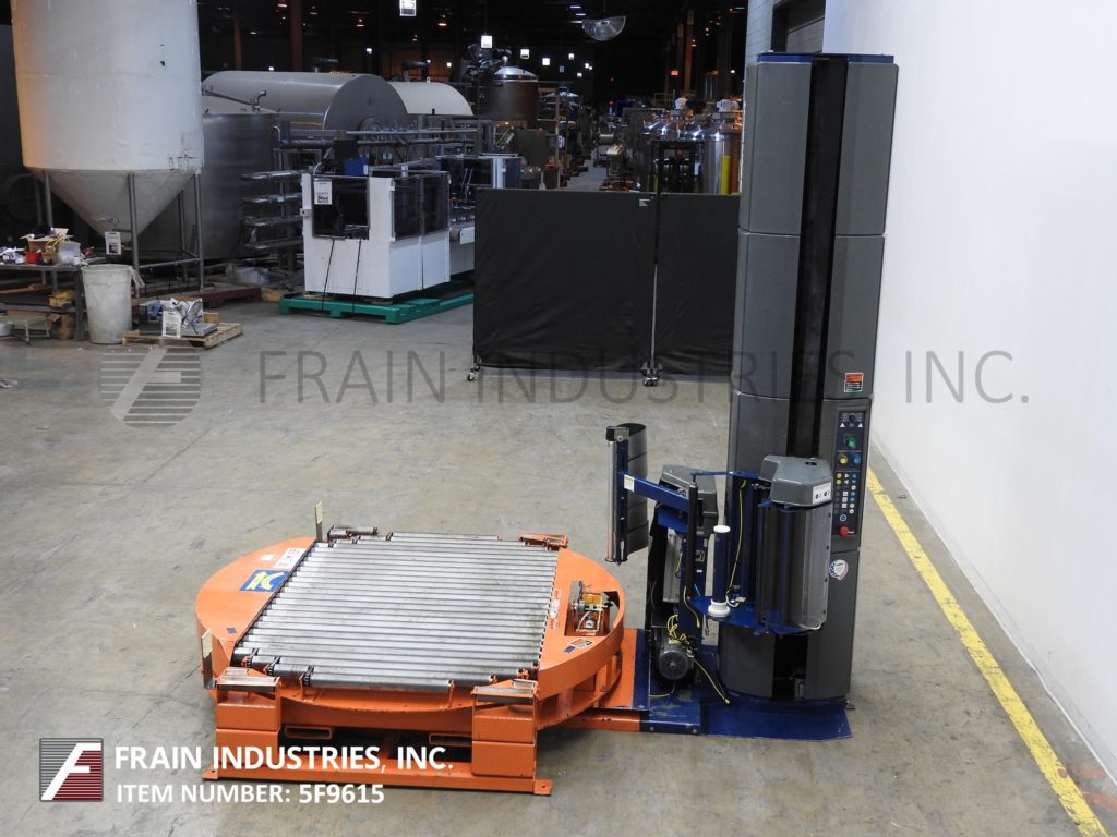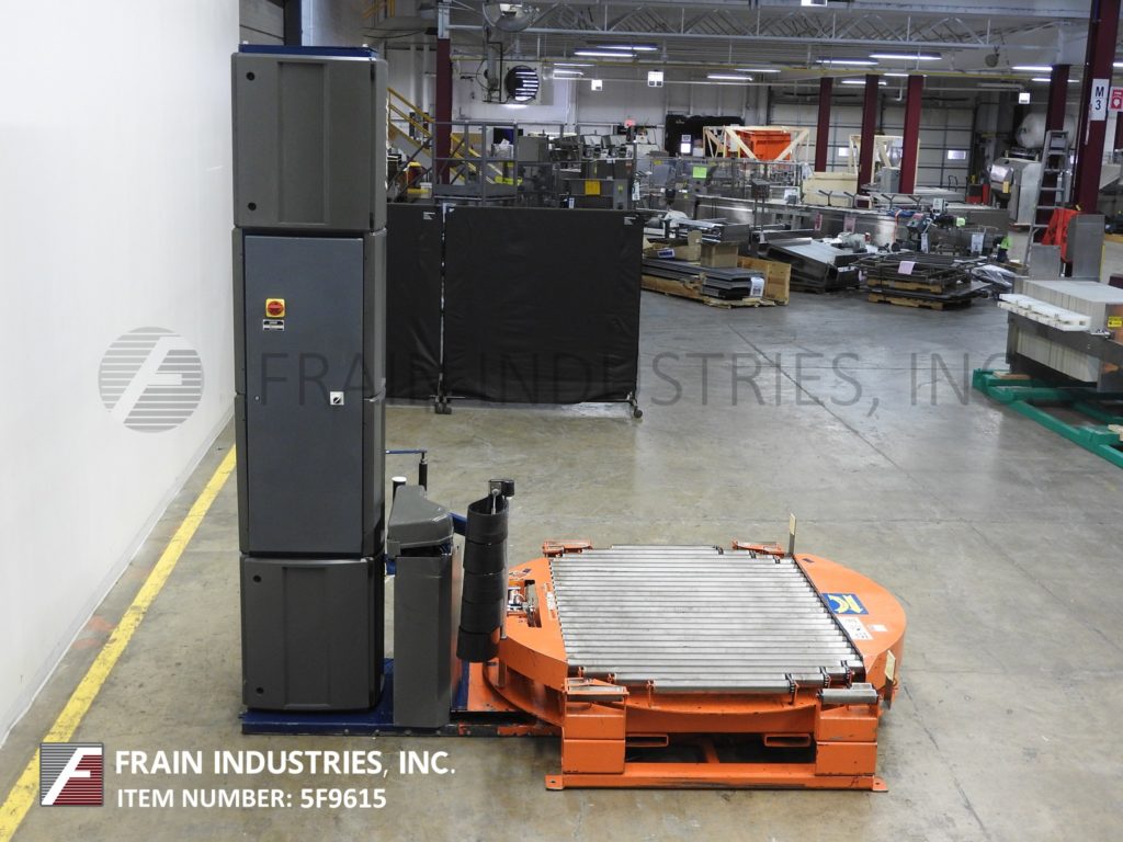 返回所有设备Lantech型QA,自动,柱式转台,每小时10到45个托盘的伸缩包装-取决于材料和应用。托盘尺寸:长达54英寸;宽度可达48英寸;高达92英寸高。最大负载:4000磅。配备81"直径转盘,54"长x 2-1/2"直径辊设置在3-1/2"中心3/4"间隙,配备5 '辊子托盘在饲料和5 '辊子卸料输送机。薄膜规格:直径可达10英寸;宽度可达20英寸;3“直径芯带动力辊,200%预拉伸,PLC控制器和按钮操作界面的剪刀式切割系统。