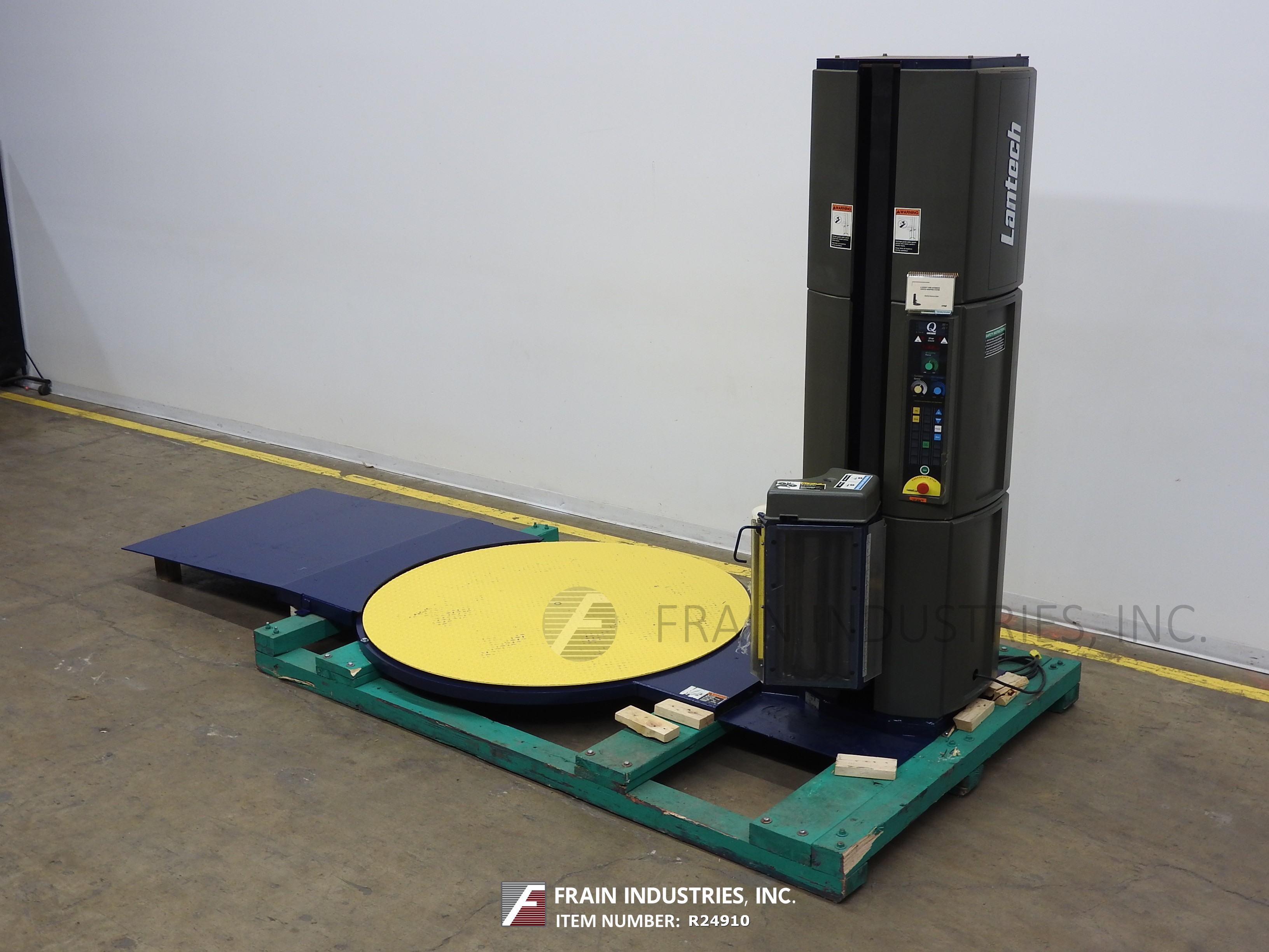 返回所有设备Lantech, Q300型,半自动,低外形,柱式拉伸包装机额定从5到35托盘每小时-取决于材料,应用和操作熟练度。负载尺寸:30"至54"长度;宽度30"至54";高达80英寸的高度。容量:高达4000磅。配备60"直径转台,20"宽薄膜卷3"核心,动力辊拉伸薄膜系统与200%预拉伸(标准),慢跑,周期和小车控制与e-stop。