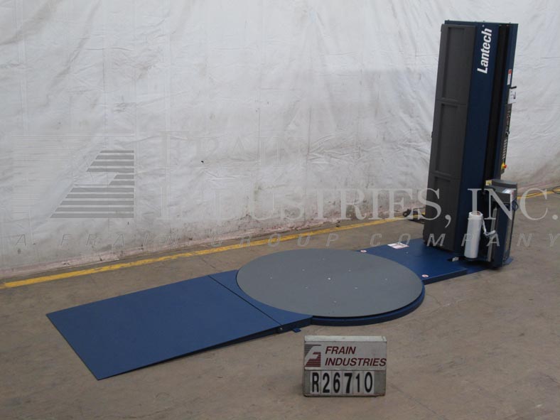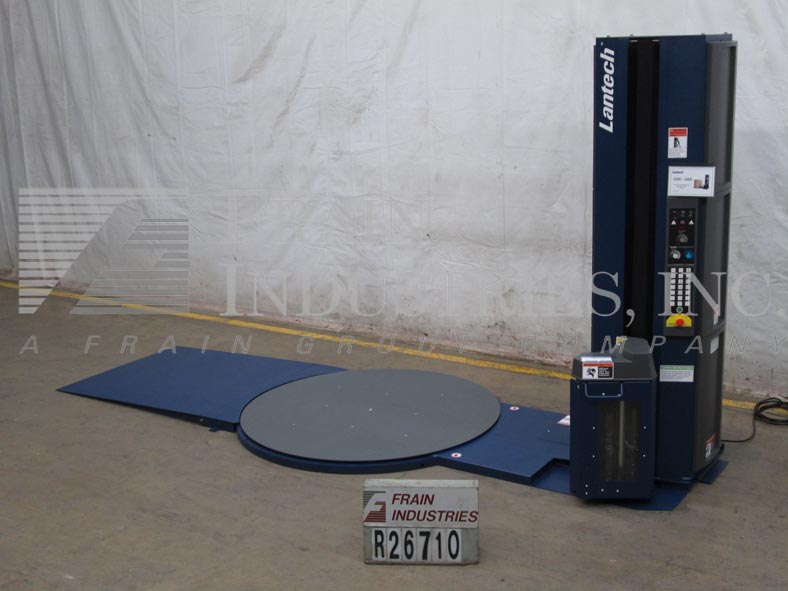 返回所有设备Lantech, Q300型,半自动,低外形,柱式拉伸包装机额定从5到35托盘每小时-取决于材料,应用和操作熟练度。负载尺寸:30"至54"长度;宽度30"至54";高达80英寸的高度。容量:高达4000磅。配备65"直径转台,20"宽薄膜卷3"核心,动力辊拉伸薄膜系统与200%预拉伸(标准),慢跑,周期和运输控制e-stop和装载坡道。