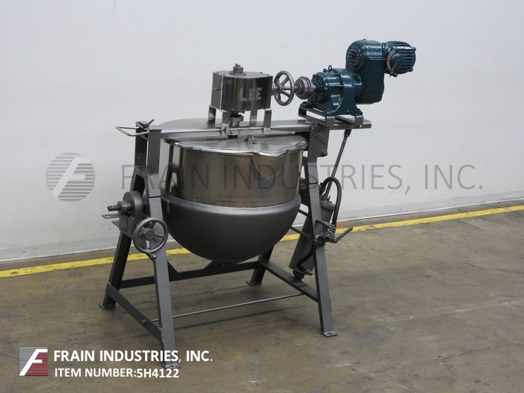 返回所有设备Lee,100加仑,304不锈钢,双重运动,刮表面,夹套倾斜水壶,每小时加仑产品 - 取决于材料和应用。船舶尺寸:36“直径X 27”深,13英寸直墙。配备桥式刮刮表面倾斜搅拌和双重翻转顶盖。安装在(4)腿基架上。