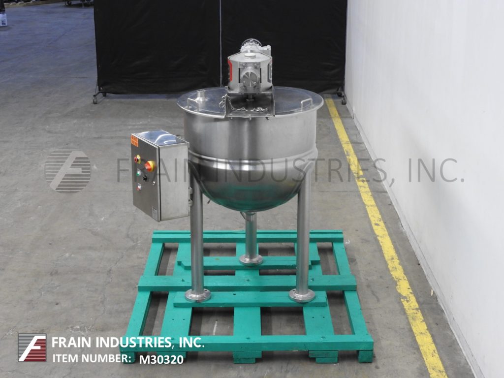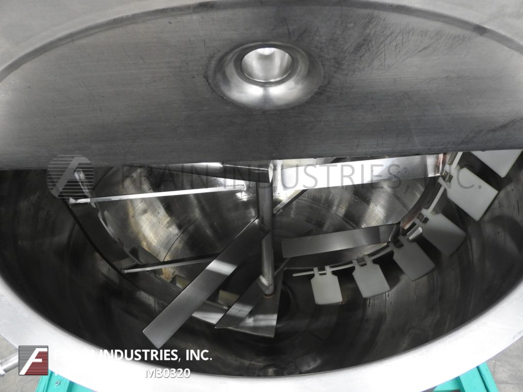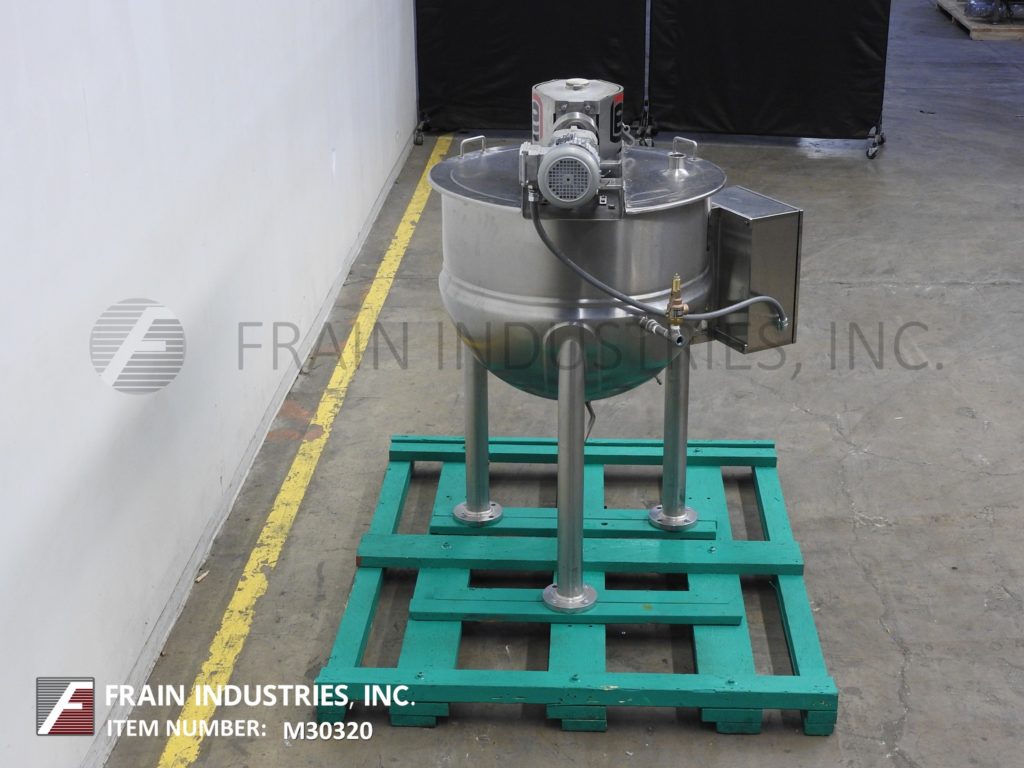返回所有设备Lee,型号100 D9ms,316不锈钢夹套水壶。船舶尺寸:36“ID X 30”深搅拌碗,带有12英寸的直墙。配备桥式安装,可变速刮板表面搅拌器,翻盖顶盖和(1)冲洗式传感器。底部有2½“OD / 2”ID Tri-Clamp风格中心底部放电,带球阀和22“楼层清除。安装在(3)不锈钢管状腿框架上。
