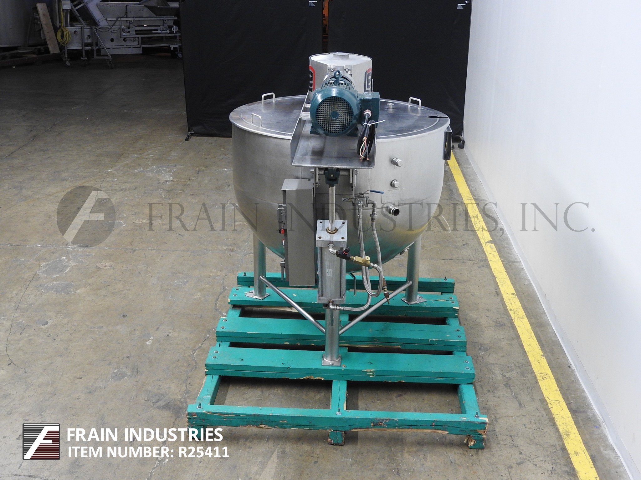 返回所有设备李型250D9MT, 250加仑,316不锈钢,双动,刮削表面,夹套水壶。船尺寸:52“内径x 39”深度。配备桥架刮板表面倾斜出搅拌和双翻转盖。双区全导管架,额定MAWP为90psi @ 322℉,MDMT为-20℉@ 90psi,(2) 2"外径1-1/2"内径侧和底部螺纹导管架在/出口端口。冲洗式安装温度计套管,2-1/2"外径中心底部排放有手动蝶阀,地板间隙6",安装在(3)不锈钢髋部插座腿上。