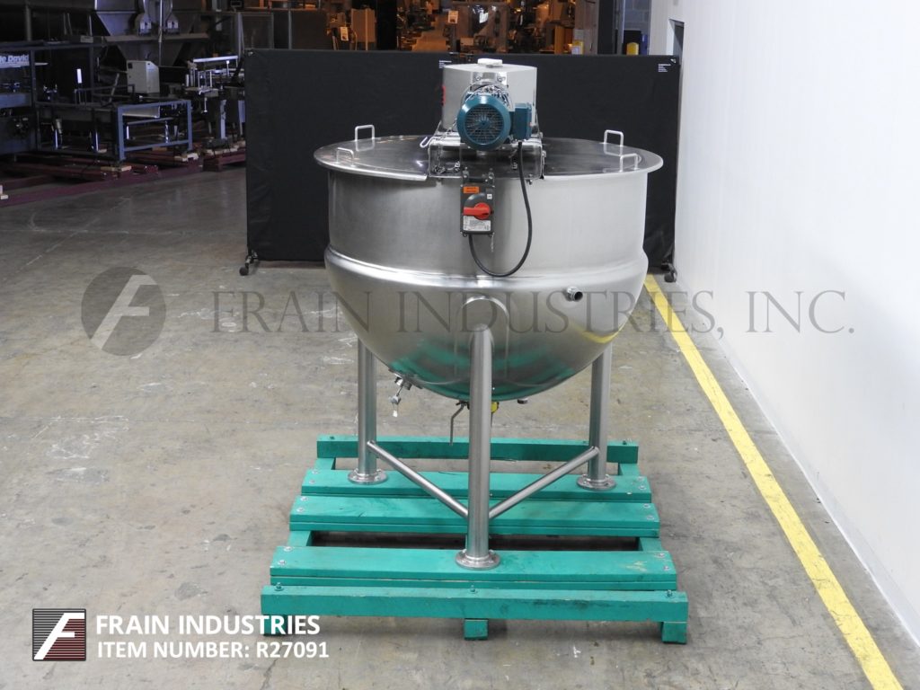 回到所有设备Lee,300加仑容量,316不锈钢夹套双重运动水壶。船舶尺寸:54“直径x 42”深,配有16英寸的直墙。配备升降盖和冲洗压力传感器。5 HP桥式刮膜和Tri-Clamp风格底部放电,带球阀。