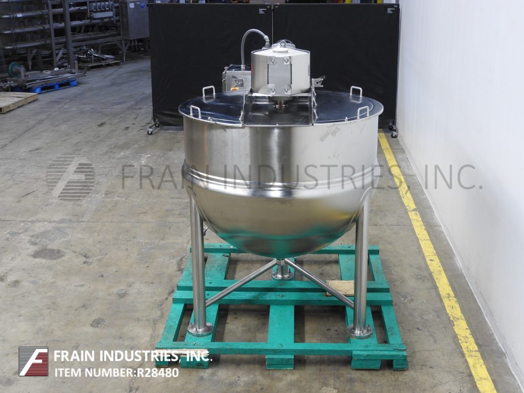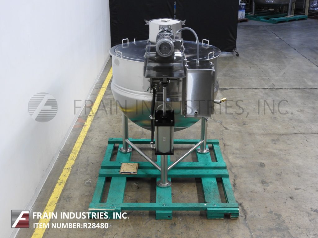返回所有设备Lee Model 300d9mt,300加仑,316不锈钢内饰,304不锈钢外部,双重运动,刮削表面,1/2夹克水壶,每小时磅产品 - 取决于材料和应用。船舶尺寸:54“ID x 42”深度。配备桥梁安装刮刮表面倾斜搅拌和双重翻盖顶盖。1/2夹克,MAWP为90 psi @ 322°F和mdmt的-20 deg f @ 90 psi,带(2)2“od 1-1 / 2”ID侧和底螺纹夹克入口/插座。2“OD中心底部放电具有齐平底球阀。安装在(3)不锈钢腿上
