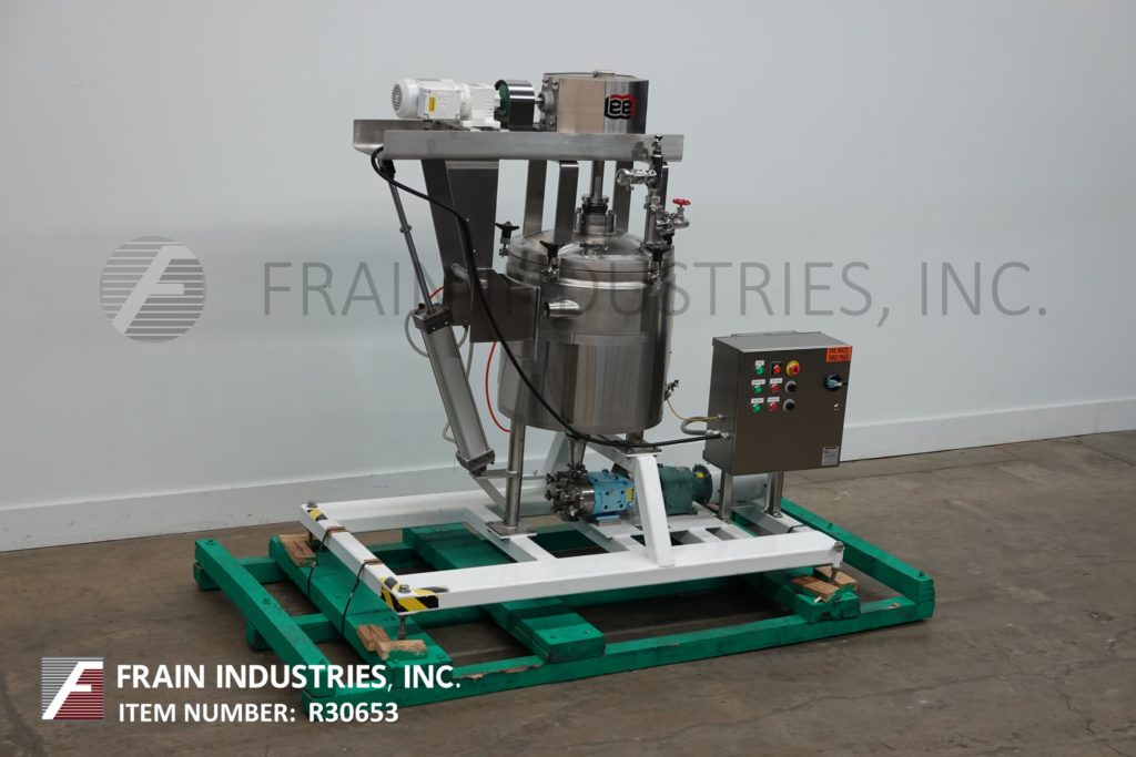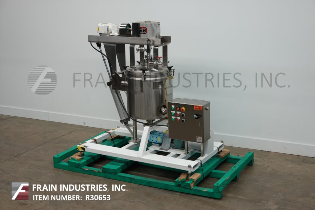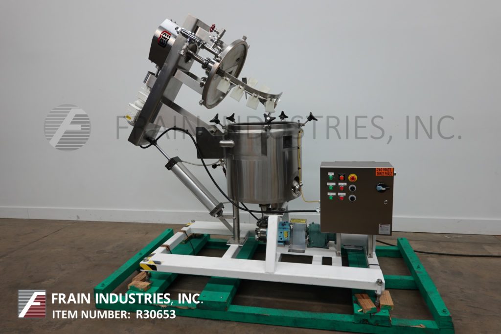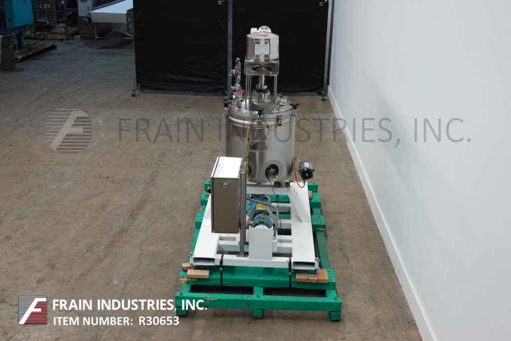 返回所有设备李,30加仑,304不锈钢夹套水壶。船舶尺寸:20“直径x 20”深,带有10英寸的直墙。配备倾斜桥接桥式刮膜,由单一的1 HP驱动器,温度探头,冲洗安装传感器和气动球阀提供动力。水壶进入沃克斯卡,型号30,正排量泵由1½HP驱动器供电,有20.9:1的比例齿轮箱,电流流速为4.9Gpm。安装在底座上。