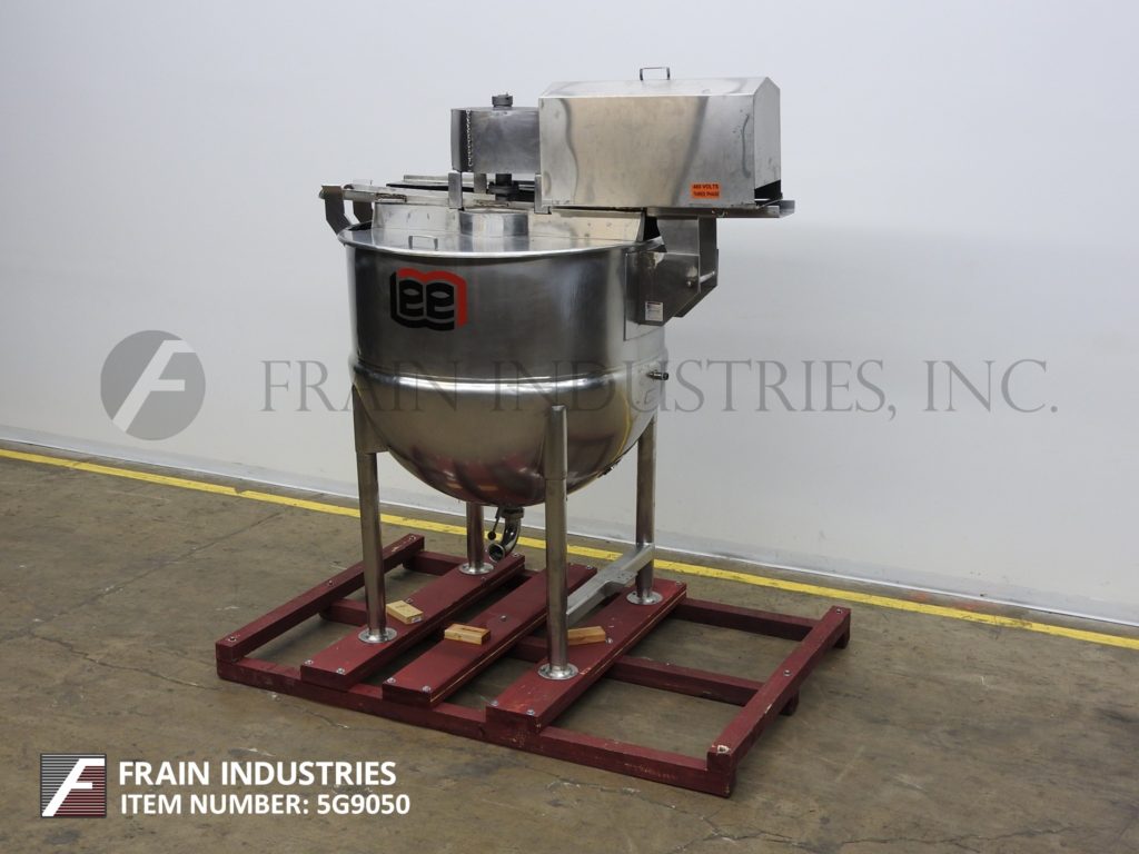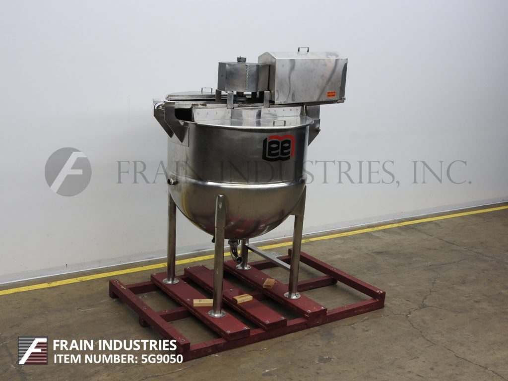 返回所有设备李,350加仑容量,不锈钢,夹套双动水壶。容器尺寸:54"直径x 48"深,20"直壁。配备升降盖,2hp桥式刮板搅拌器,变速齿轮箱和2½”外径/ 2”ID阀座斜面式底部排放阀,90°弯头和13½”离地间隙。