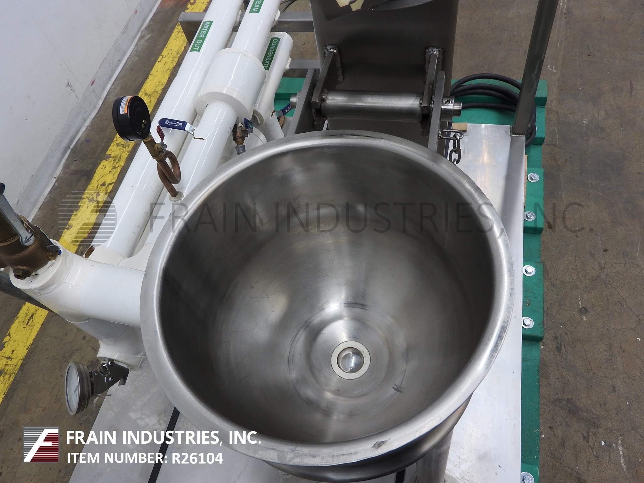 返回所有设备Lee Model 3D9MT,3加仑,316不锈钢,夹套,双运动,刮削表面混合水壶。船舶尺寸:9- / 12“直径; 10”深度。配备桥式安装,倾斜双运动刮表面搅拌,1/2夹克在MAWP的90 psi @ 332°F时缩小。(2)1“OD夹克入口/插座。1-1 / 2”OD中心底部放电,12“底部间隙,并安装在基础平台上的(3)不锈钢腿,用水和蒸汽进出/蒸汽,带有压力表的绝缘管道。国家董事会#4475