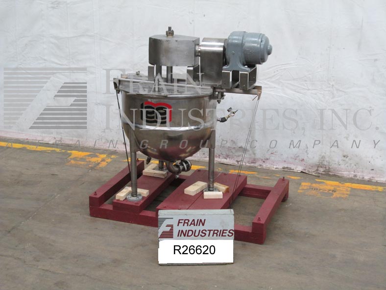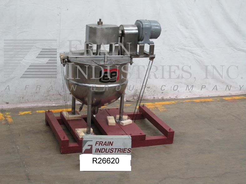 返回所有设备李50D9MS型,50加仑,316不锈钢,双动,刮削表面,夹套水壶。容器尺寸:28"直径x 24"深度。配有桥式刮板搅拌器,双翻转式顶盖,其中一个有2" OD卫生端口。1/2护套,MAWP为40 psi,温度为300℉,外径为1",底部螺纹护套进口和出口。2“外径中心底部排放,12”地板间隙,安装在(4)腿上。