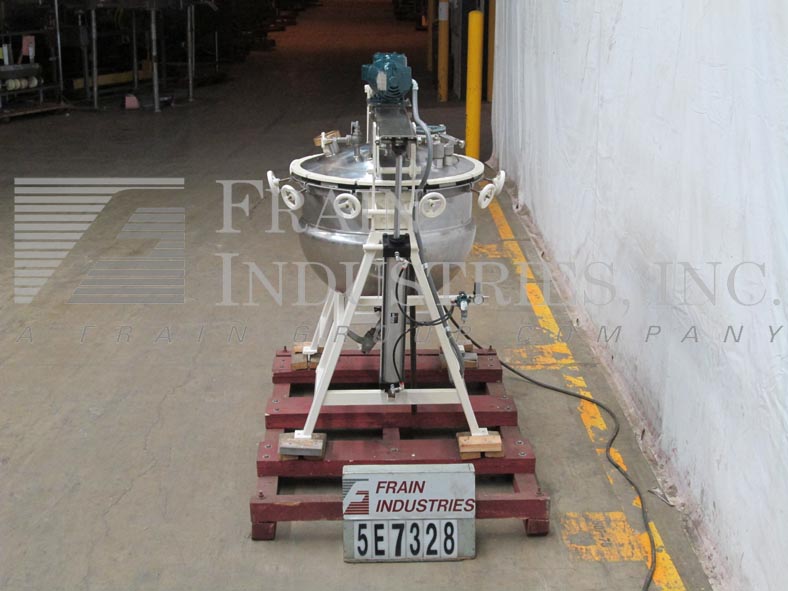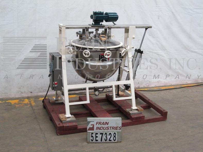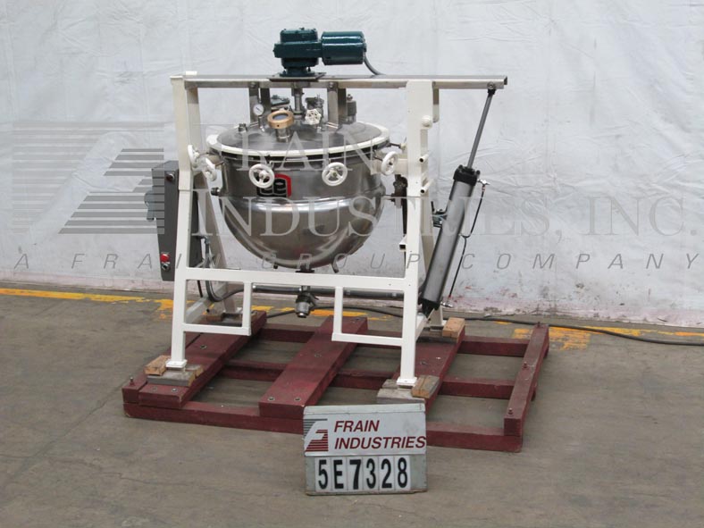 返回所有设备30加仑,316 S/S,单动,内部额定压力水壶。尺寸:30" ID x 28"深。外壳额定压力:90psi,温度330℉。内部压力:15psi。配备刮板表面搅拌器,用螺栓固定液压升降盖,两个2-1/2”外径一个1-1/2”外径,一个1”外径顶部端口,一个4”外径和一个2”外径现场端口和2-1/2”外径卫生中心底部在20”地板间隙排放。
