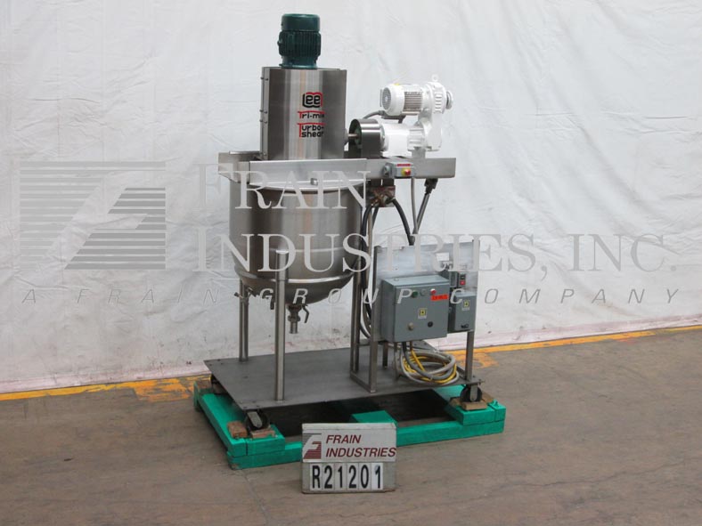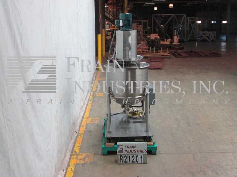 返回所有设备李,60D12T型,316不锈钢夹套釜。容器尺寸:32"内径x 30"深,15"直壁。配备倾斜桥式双动刮桨,由2hp驱动和变速齿轮箱驱动,高剪切搅拌,由3hp直接驱动,2½“外径/ 2”ID三钳式排放与球阀和11½“地间隙。安装在基础框架与脚轮。