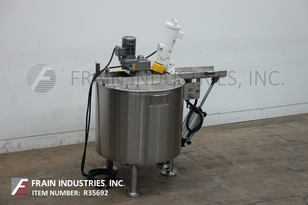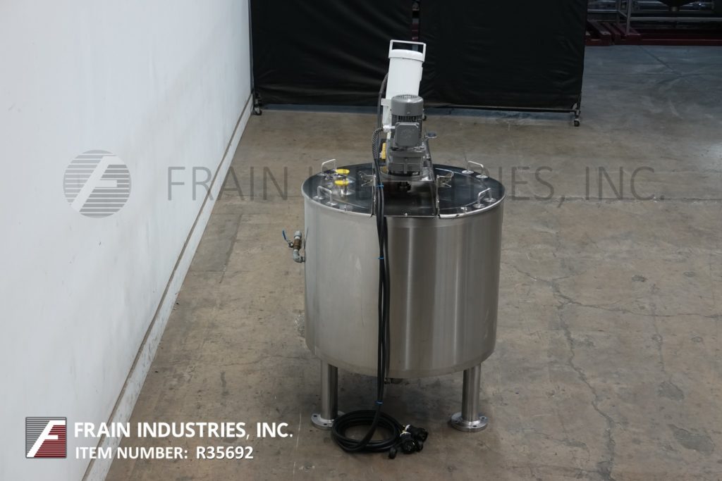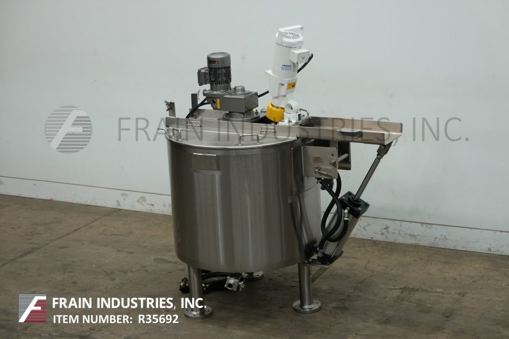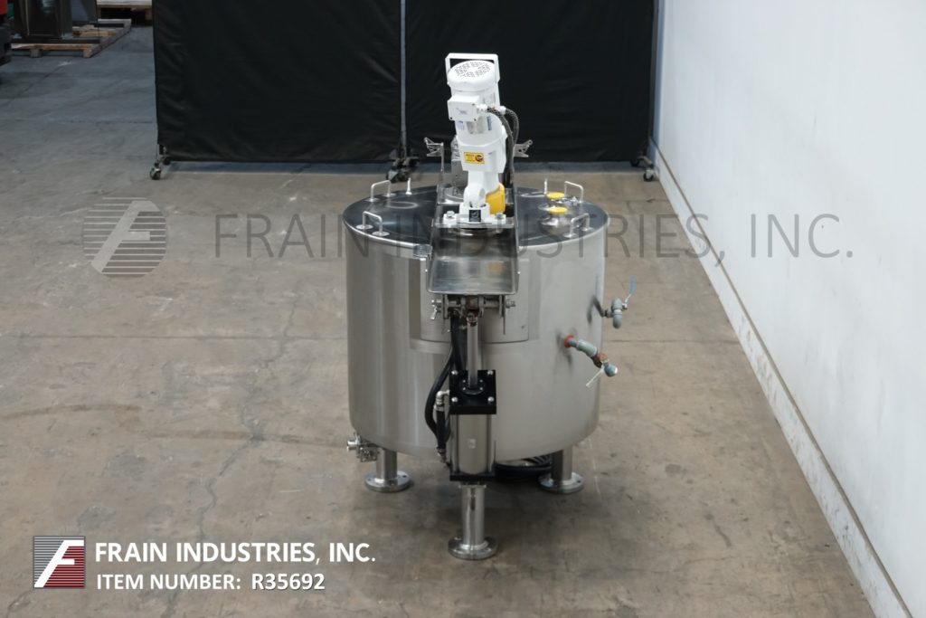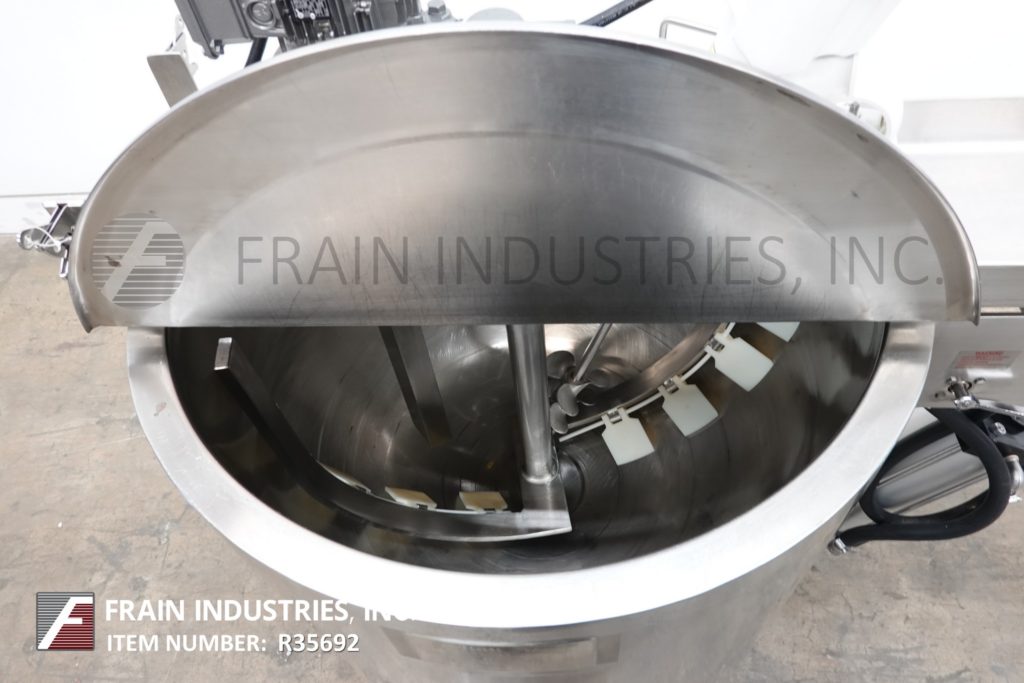 返回所有设备Lee 100D7T型号,100加仑,316不锈钢夹套和绝缘双运动水壶,每小时可生产多少加仑的产品——取决于材料和应用。容器尺寸:36"直径x 30"深,15"直壁。配备倾斜的桥式刮擦表面搅拌由1马力驱动,支柱搅拌由1 / 4马力驱动,固定挡板,2"外径/ 1½"ID三钳底部放电与15"地间隙。安装在(3)不锈钢支腿上。