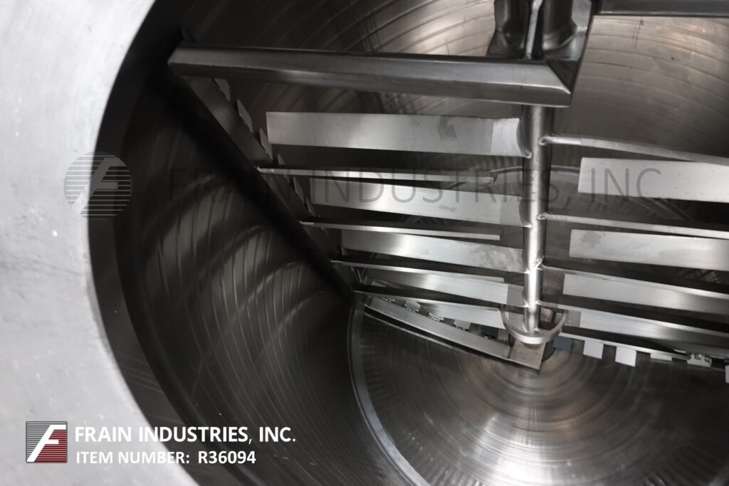 Back to All EquipmentLee, 1500 gallon capacity, 316 stainless steel jacketed and insulated process tank. Vessel dimensions: 78" diameter with 86" straight wall. Equipped with dome top, 24" OD flip top man way and top mounted 15 Hp / 10 hp double motion scrape surface agitation. Dish bottom has 4½" OD / 4" ID center bottom ball valve discharge with 27" ground clearence.