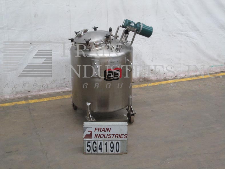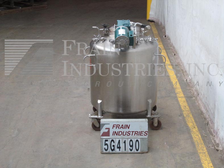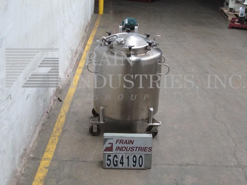 返回所有设备Lee 130加仑(500升)便携式316不锈钢混合容器。船舶尺寸:34“ID X 30”高直壁,血管压力等级:最大。设计内部FV / 35 PSI @ 281°F。配有圆顶顶/皿底,18英寸的直径通道,带挤压盖,3“ID Tri-Clamp端口,(8)1-1 / 2”ID卫生三夹连接入口,倾斜/胶印机,带4“支柱激动,1-1 / 2“ID中心底部三夹出口,3”接地间隙。坦克安装在(4)重型脚轮上,两个旋转刹车。