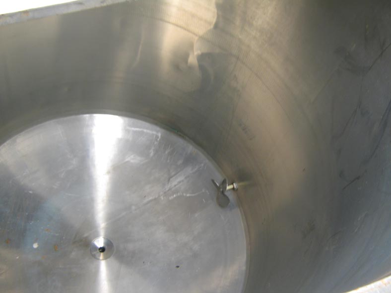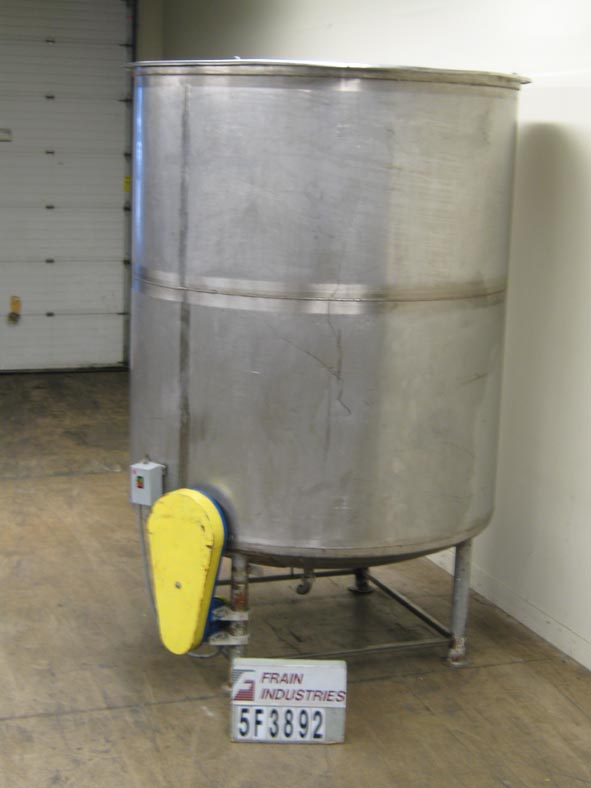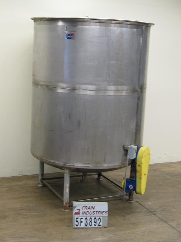 返回所有设备李,2000加仑,304不锈钢,单壁,碟底水箱。容器尺寸:直径80";103年“深度。配备翻转式顶盖,侧底支柱式搅拌器直径10",2-1/2"外径中心底部排出物与8"地板间隙。安装在四个钢腿上。