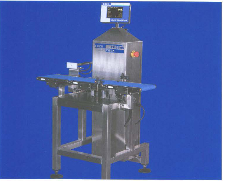 返回所有设备锁住CK2500不锈钢检验秤,手臂机械拒绝。测压元件:13”长x 9”宽额定重量从25克到2500克-取决于材料和应用。配备13“长× 8”宽的进料输送机和17“长× 8”宽的出料输送机,按键操作界面,LED显示。安装在可调节高度的腿。