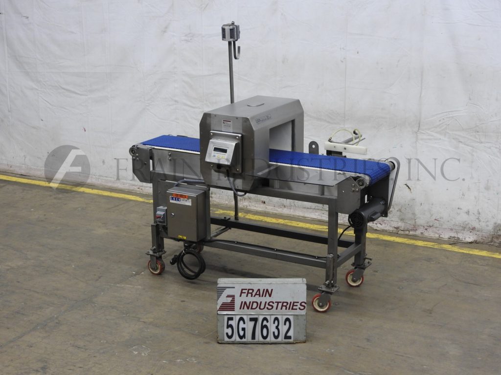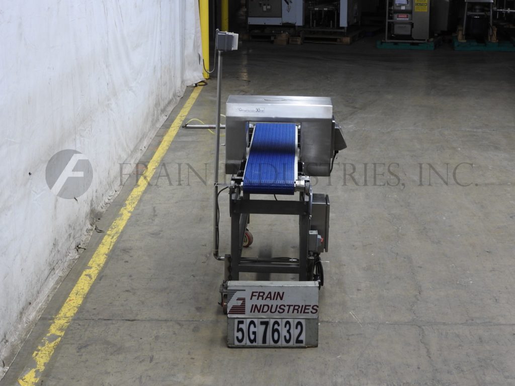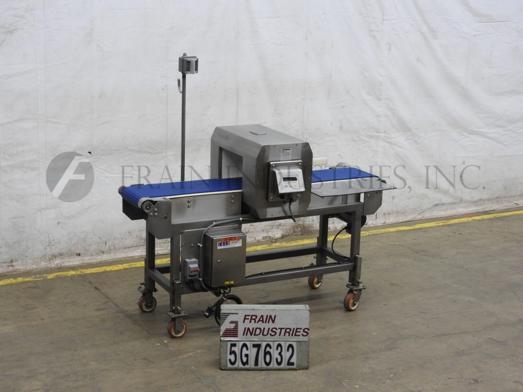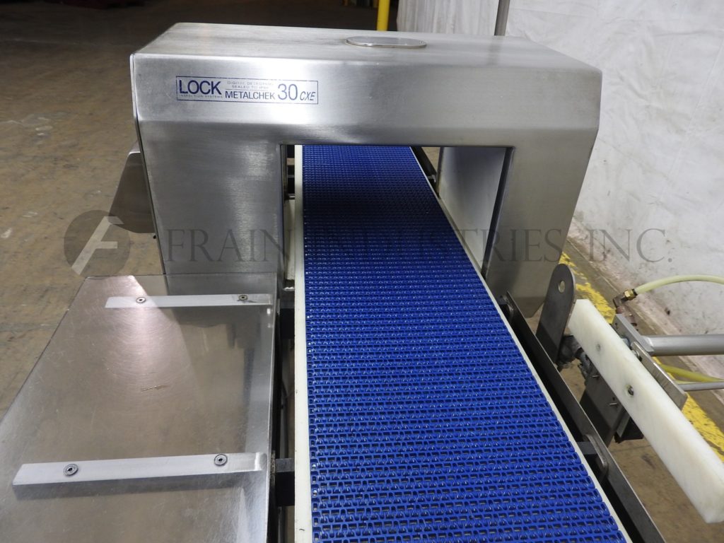 返回所有设备锁,MET 30CXE型,不锈钢金属探测器。灵敏度:1.5mm铁,1.5mm有色和2.0mm不锈钢和每分钟的容器数量-取决于产品,容器和条件。配备8½“高× 14”宽孔径,12“宽× 70”长的intralox传送带38“饲料/排放高度,声音报警和气动活塞臂拒绝。控制面板有按钮控制器。安装在(4)腿不锈钢基础框架与脚轮。