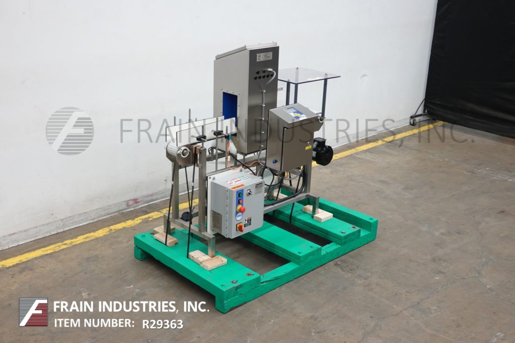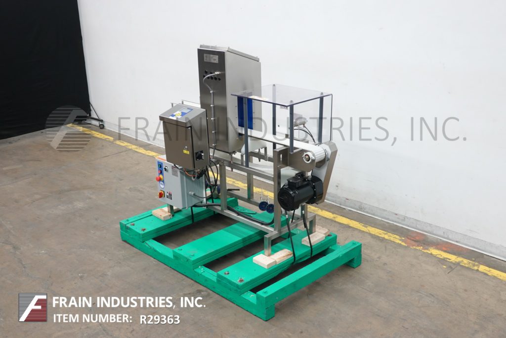返回所有设备Lock, Model Insight 3F/HF HDE,自动,在线,不锈钢,三频率,金属探测器每分钟产品数量-取决于材料和应用。工作光圈:10½英寸高;6”宽。配备4“宽x 60”长的白色伸缩链接产品输送机与推臂拒绝,变速。敏感性:取决于运行的产品、容器和环境。触摸板控制与显示。安装在(4)腿基础框架上。