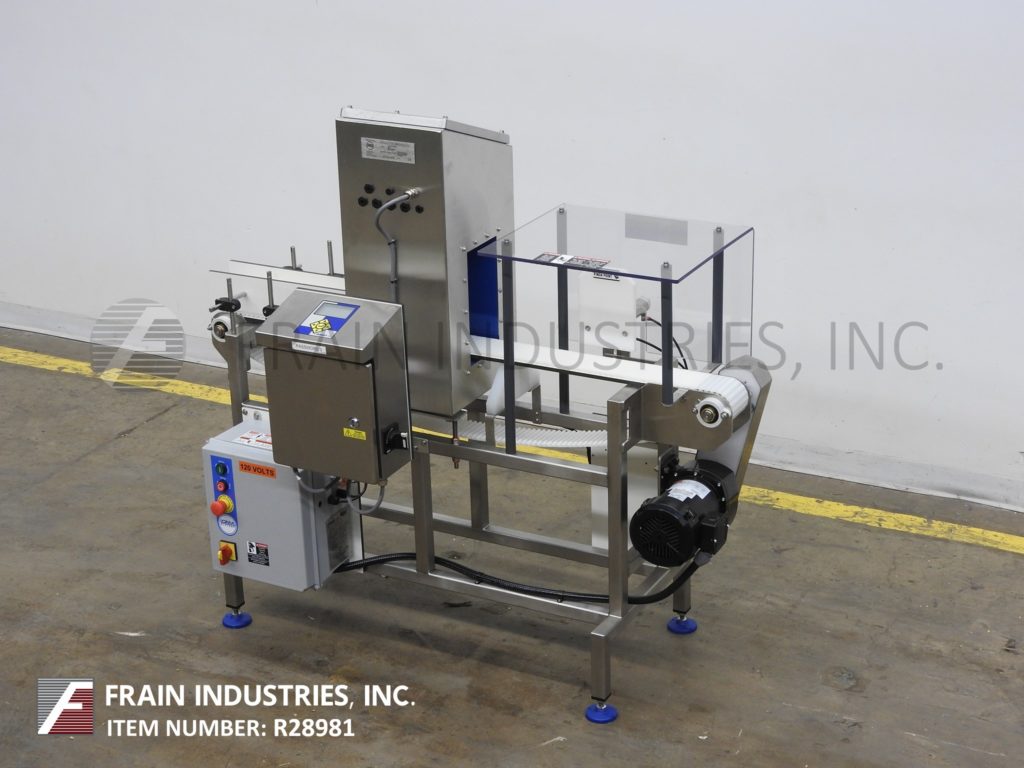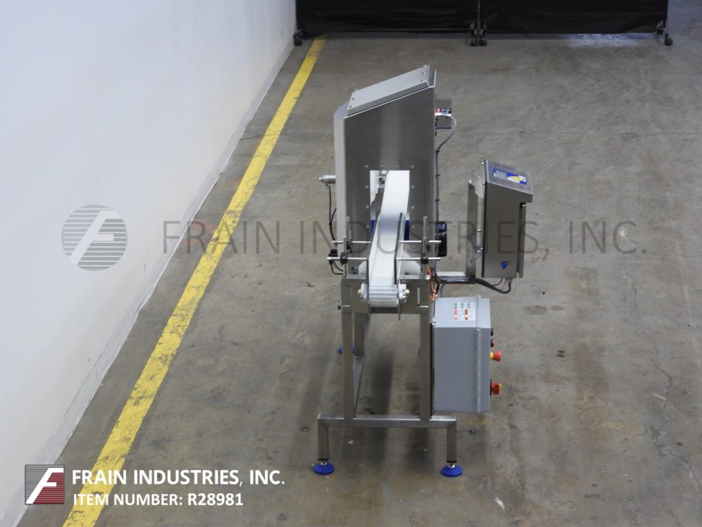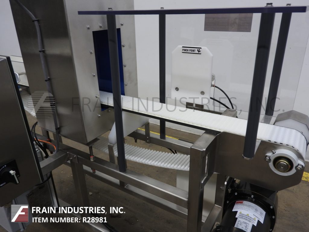 返回所有设备锁定,模型洞察力3F / HF HDE,自动,线,不锈钢,三个频率,金属探测器,每分钟产品数量 - 取决于材料和应用。工作孔径:10½“高度; 6”的宽度。配备4“宽X 60”长白色Flex Link产品输送机,带有推挤臂,可变速度。敏感性:取决于产品,容器和升温。触摸垫控制与显示屏。安装在(4)腿基框架上。
