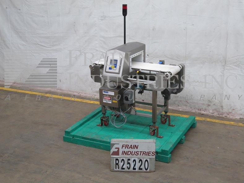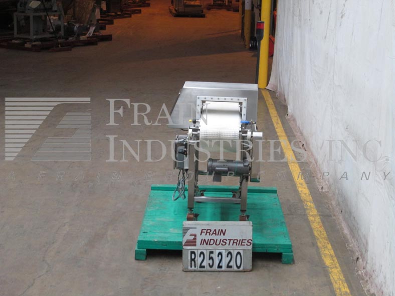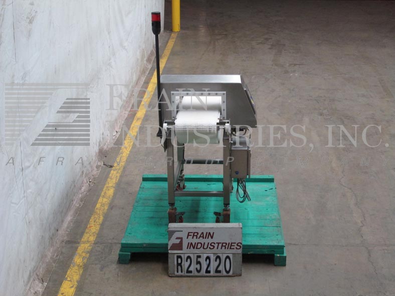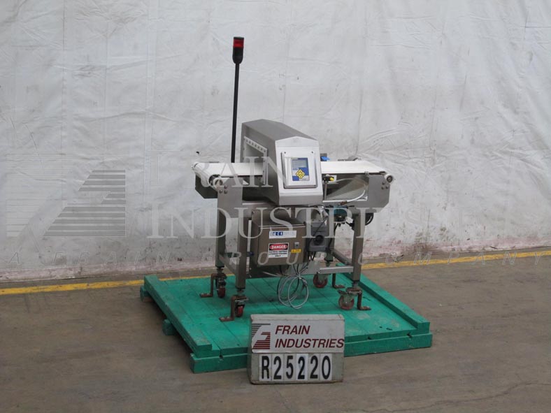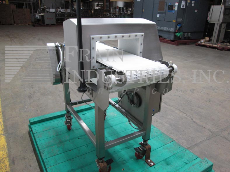 Back to All EquipmentLock Model Insight, IP693FHF, brushed stainless steel construction, three frequency, metal detector rated from 20 to 60 feet per minute, with number of products – depending on materials and application. Total Aperture: 6" in Height; 14" in Width, Working Aperture: 4-12" in Height; 12" in Width. Equipped with 12" wide x 48" long white flex link product conveyor with ram reject, high frequency selector for (3) frequencies 100 Khz, 286 Khz and 875 Khz, with sensitivity ratings of 0.9mm ferrous, 1.2mm non-ferrous and 1.2mm stainless steel, dependant on product, container and operating conditions with operating temperatures from 14 to 140 Deg F . Touch pad control panel with readout and is programable from 1 to 200 different presets with DDS diect digital signal, statis light bar and mounted on a stainless steel base frame with casters