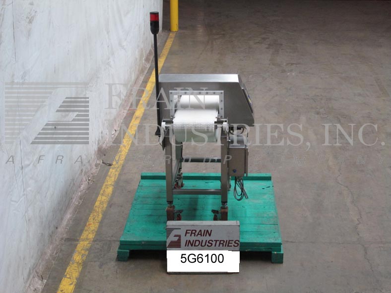 返回所有设备Lock Model Insight, IP693FHF,不锈钢,三频率,金属探测器额定从20到60英尺每分钟,根据材料,应用和机器配置的产品数量。总光圈:6英寸高度;宽度14英寸,工作光圈:高度4 1/2英寸;12”宽。配备12英寸宽x 48英寸长的伸缩链节输送机,冲压拒绝。高频选择器(3)频率100 Khz, 286 Khz和875 Khz。敏感性:取决于运行的产品、容器和环境。操作温度从14到140华氏度。触摸板控制面板可编程1至200预设与DDS直接数字信号和状态灯条。安装在脚轮