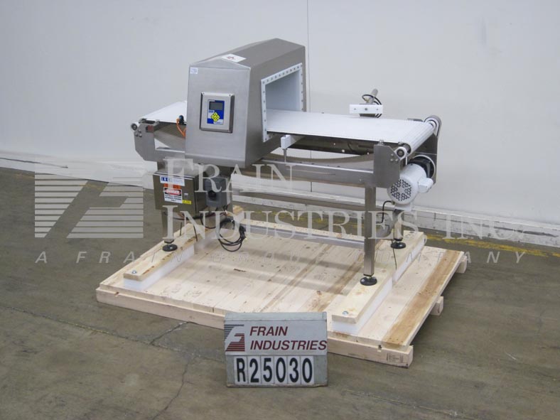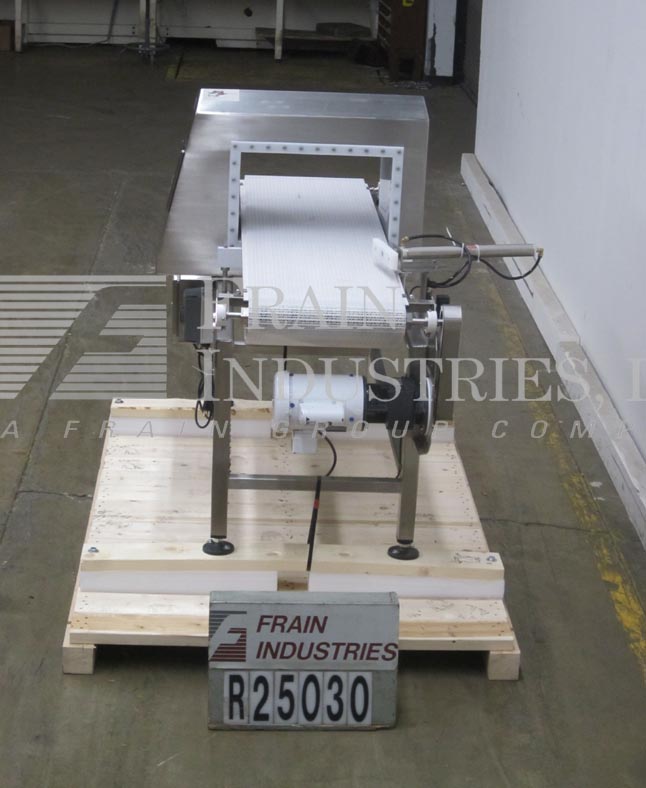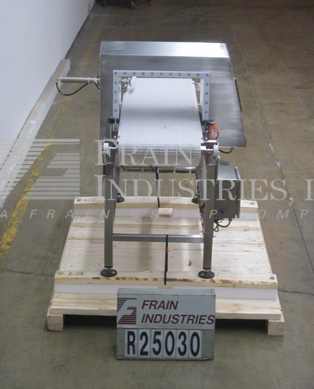 返回所有设备Lock Model Insight,自动,不锈钢,三频,金属探测器,额定20至60英尺每分钟-取决于材料和应用程序19-3/4”宽。可用光圈:10-1/2”高度;18-1/2”宽。配备18英寸宽x 72英寸长的柔性链接产品输送机,重型滑块拒绝系统与推板,灵敏度:取决于产品,容器和环境运行。触摸板控制器和视觉显示。安装在带脚轮的不锈钢框架上。