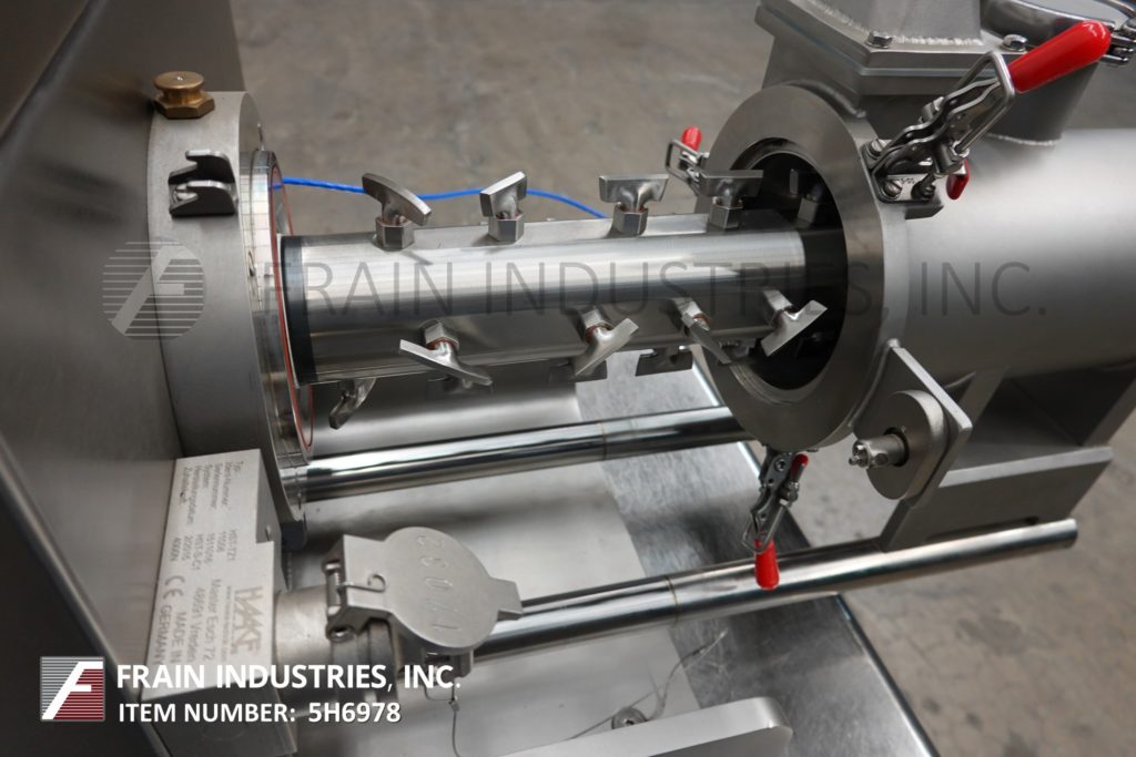返回所有设备Lodige,KM5型,0.14 ft³,不锈钢搅拌机。腔室尺寸:4¾“直径x 14”长。在直径为2½”的轴上配备(28)个犁,齐平安装传感器和2½”OD/2”ID三灯充放电,离地间隙为36”。安装在60“长x 30”宽的不锈钢工作台上。