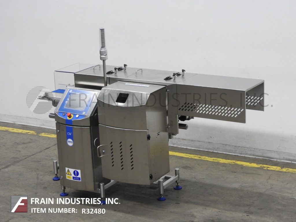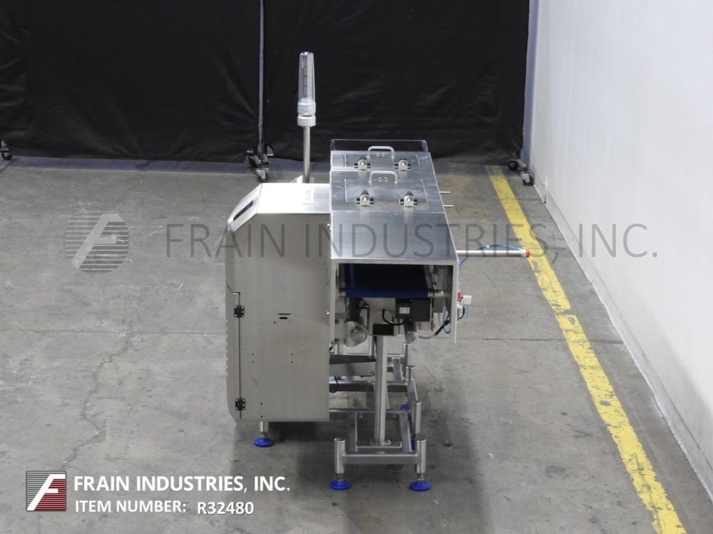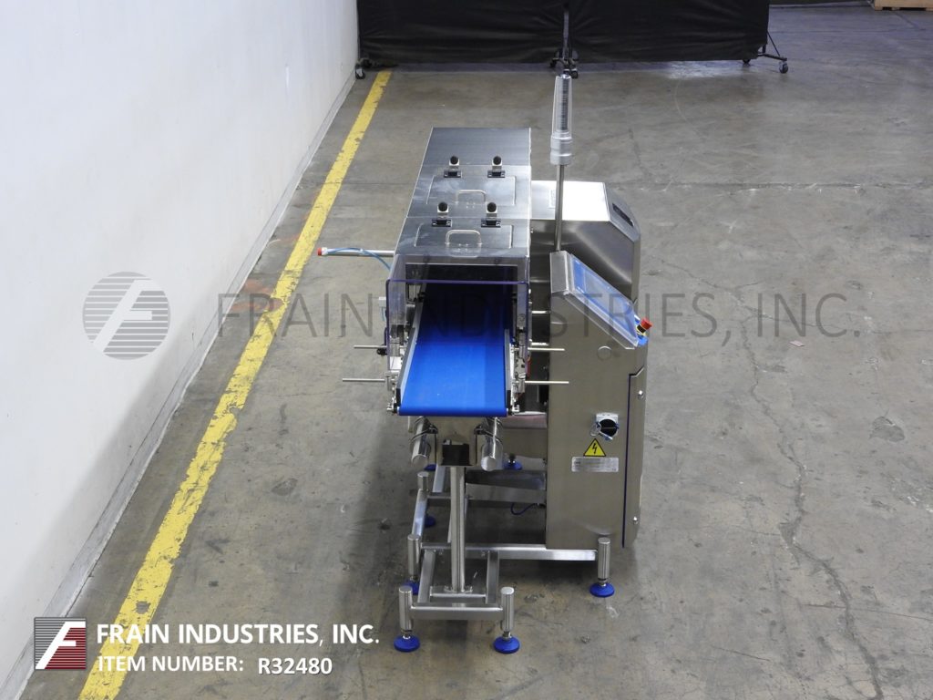 Back to All EquipmentLoma Model CW3 1500, inline, checkweigher rated up to 140 feet per minute with number of product – depending on materials, application, machine configuration and environment being run in. 304 stainless steel construction with brushed finish, Weight range: 1500 grams. with Accuracies depending on product being run and enviroment being run in, IP65 enviroment and temperatures from 0 to 40 Deg C. Equipped with covered product weigh and reject area 22" long x 11-3/4" wide in feed, 15.75" long x 11-3/4" wide load cell and 27" long x 11-3/4" wide discharge anti static food quality conveyors with single ram arm reject, reject collection bin and statis light bar. Control panel has touch pad controller with readout, start, stop, e-stop push buttons and data retrieval capable. Mounted on height adjustable (4) leg base frame.