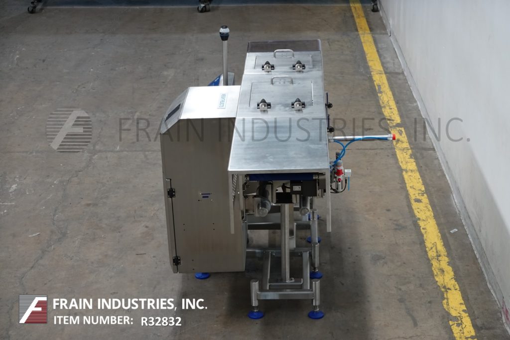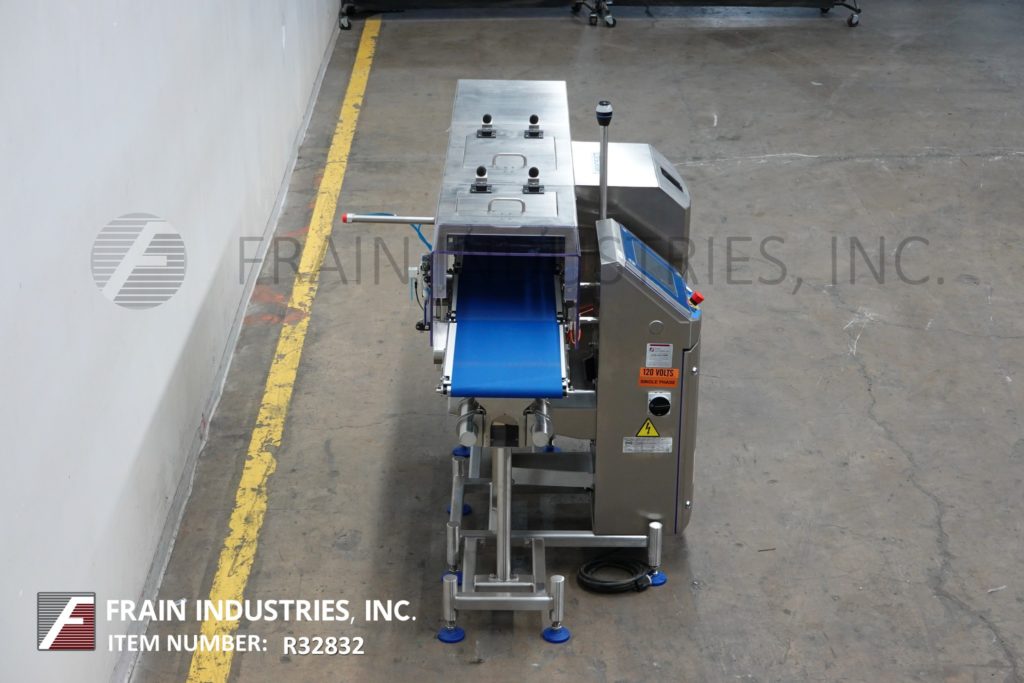 返回所有设备Loma型号cw31500,内联,校验秤额定每分钟140英尺,产品数量取决于材料,应用,机器配置和运行环境。304不锈钢结构,表面拉丝处理,重量范围:1500克。精度取决于产品运行和运行环境,IP65环境和温度从0到40℃。15.75"长x 11-3/4"宽的测压元件和27"长x 11-3/4"宽的卸料防静电食品质量输送带,带单冲压臂拒绝,拒绝收集仓和统计光棒。控制面板有触摸屏控制器,具有读数,启动,停止,e-stop按钮和数据检索功能。安装在高度可调(4)腿基础框架。