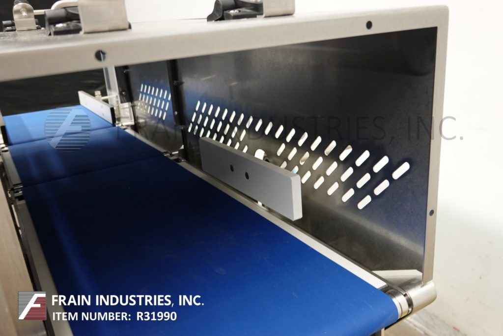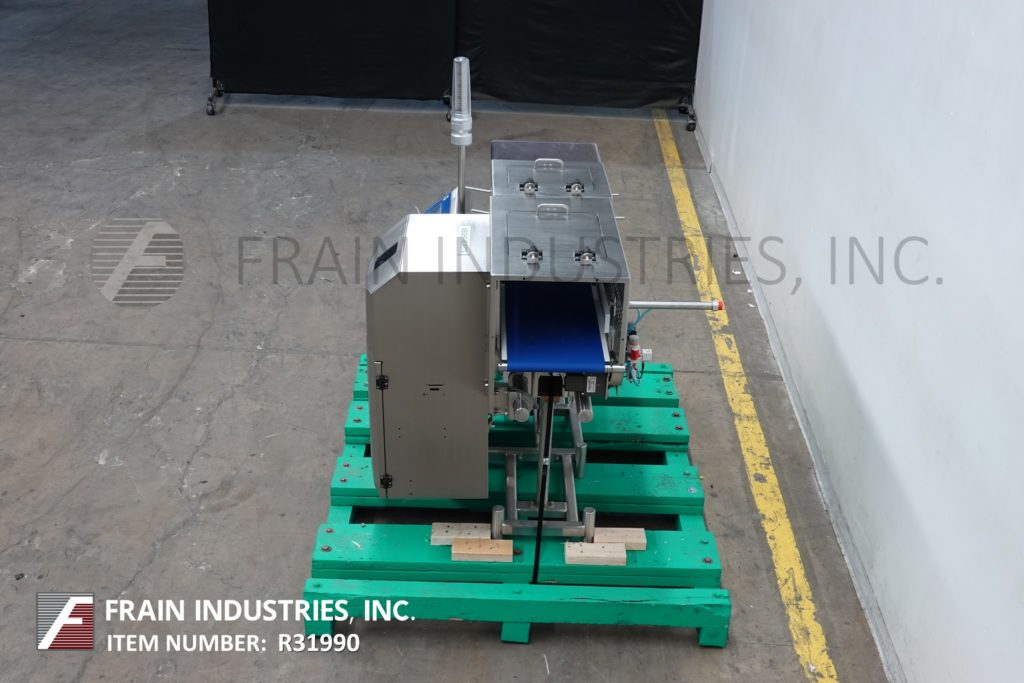 返回所有设备Loma型号cw31500,内联,校验秤额定每分钟140英尺,产品数量取决于材料,应用,机器配置和运行环境。304不锈钢结构,表面拉丝处理,重量范围:1500克。与精度取决于产品运行环境中运行,IP65环境和温度从0到40度c .配备22“长x 11-3/4”广泛的饲料,宽15.75“长x 11-3/4”负载细胞和27“长x 11-3/4”与单宽流量反静态食品质量输送机ram手臂拒绝,拒绝收集箱和统计灯棒。控制面板有触摸屏控制器,具有读数,启动,停止,e-stop按钮和数据检索功能。安装在高度可调(4)腿基础框架。