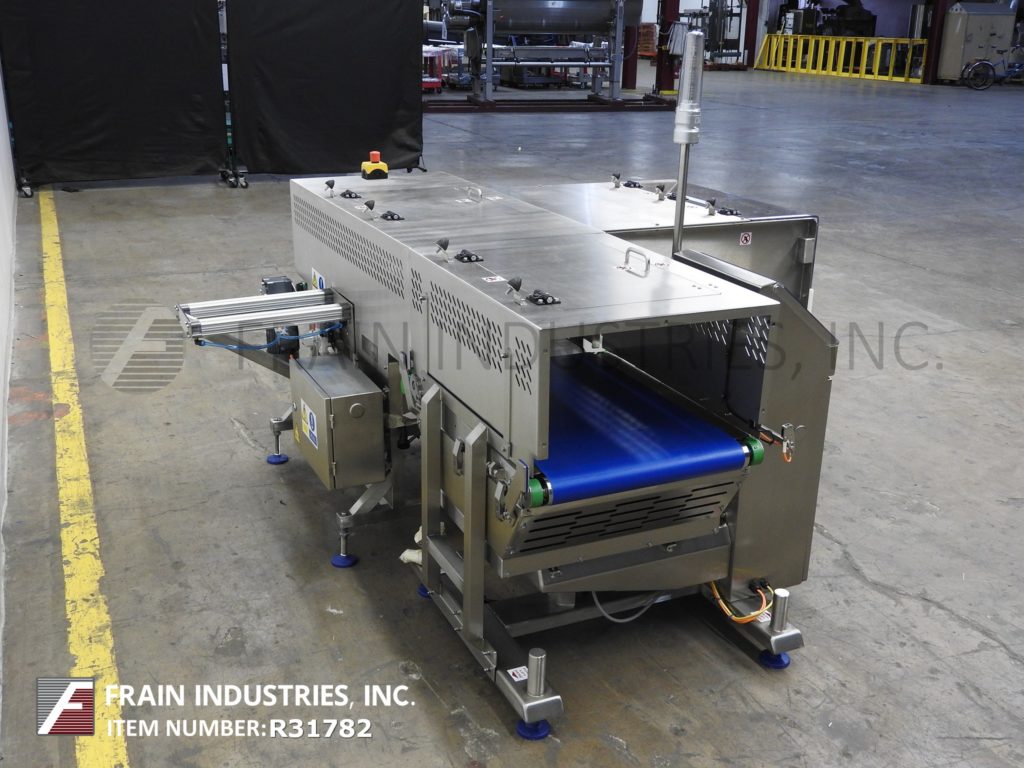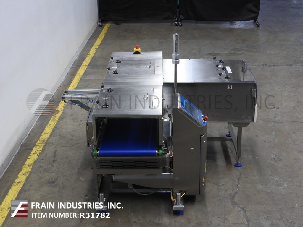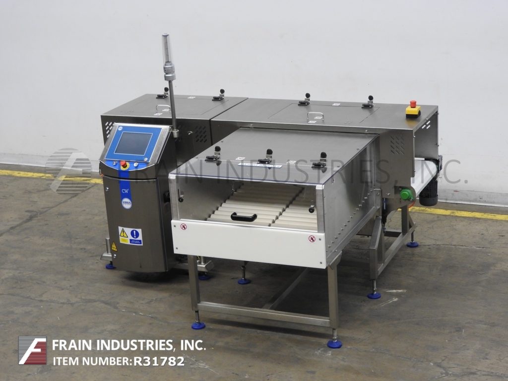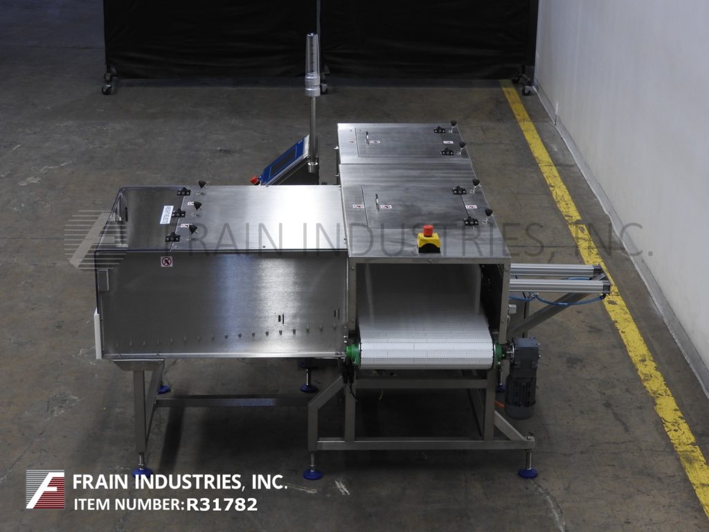 返回所有设备LOMA Model CW3内联,超级重型触控垫控制,RAM臂剔除和滚动轨道排放截面额定电量高达54米或177英尺/分钟,产品数量 - 取决于材料,应用,机器配置和环境正在进行。304不锈钢结构。专为称量大型线封装商品,包括大袋和箱子,高达60公斤/ 60,000克或132磅。精度+/- 1.14克,操作温度从0到40°C的距重,配备30“长x 19-1 / 2”宽蓝色PU产品称重带。控制面板具有带操作员界面的触摸板控制器和E-STOP。数据检索能够通过USB,以太网,ENET,TRACS和运行灯条。RAM ARM滚动轨道拒绝系统具有30“长单RAM拒绝臂至40”长滚子产品放电,具有(2)15“宽滚子部分,其中2个”OD滚筒“,套2-1 / 2”中心和1/2“差距。两者都安装在高度可调节框架上,带顶部的翻盖门门。