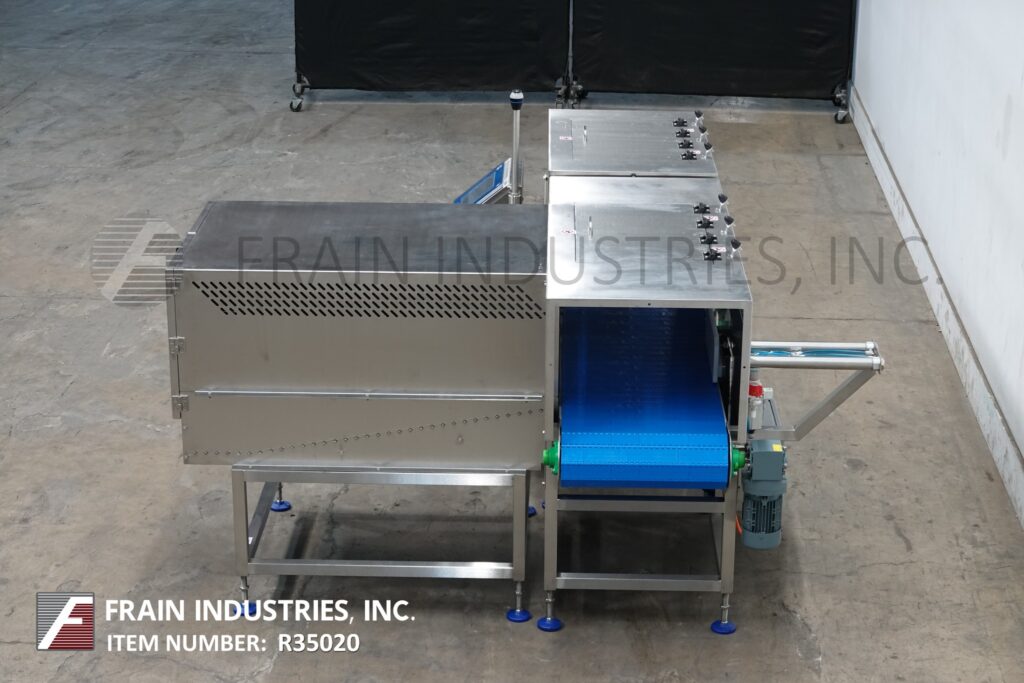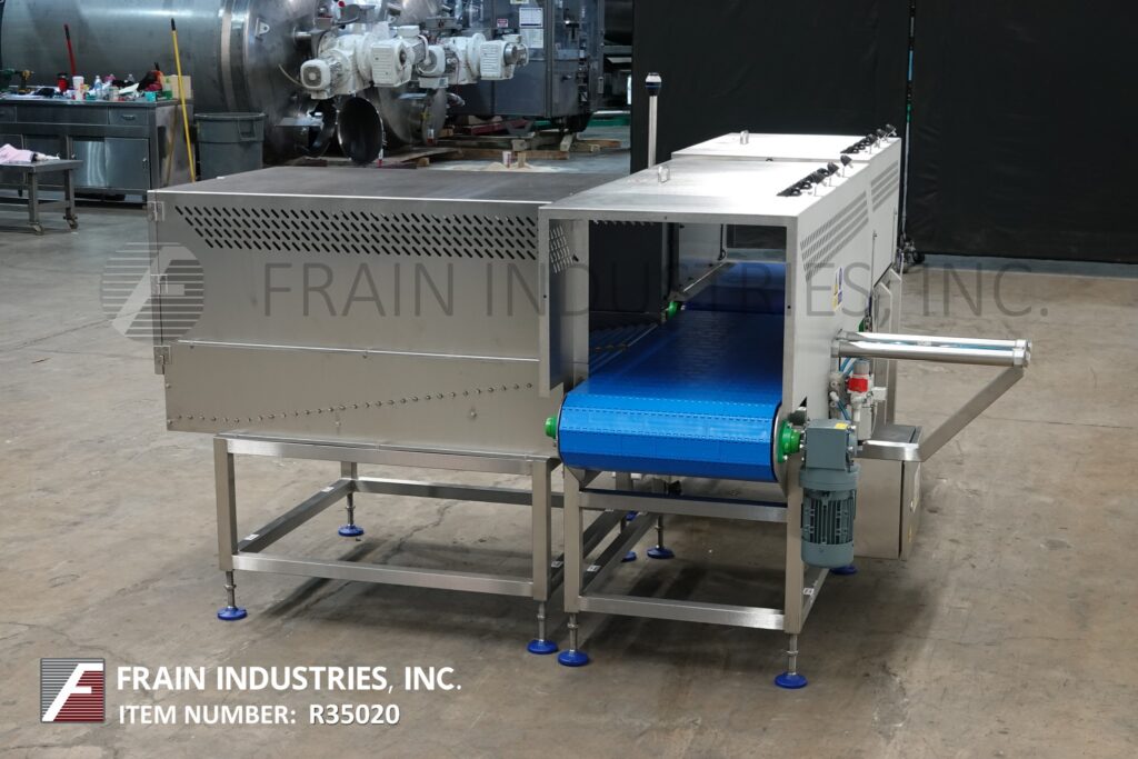 Back to All EquipmentLoma, Model CW3 60000S, in line, super heavy weight, touch pad controlled checkweigher with ram arm reject and roller track discharge section. Rated up to 54 meters or 177 feet per minute with number of product – depending on materials, application, machine configuration and environment being run in. 304 stainless steel construction. Designed for weighing of large end-of-line packaged goods including big bags, boxes and cases up to 60 Kg / 60,000 grams or 132 lbs. Accuracies +/- 1.14 grams, with operating temperatures from 0 to 40 Deg C. Checkweigher equipped with 36" long x 19½" wide Blue PU product weigh belt, 50" long x 19¾" wide reject station belt, ram arm roller track reject system has a single ram reject arm to 48" long roller product discharge with (2) 15" wide roller sections. Control panel with touch screen HMI. Both mounted on height adjustable frames with top flip-up access doors.