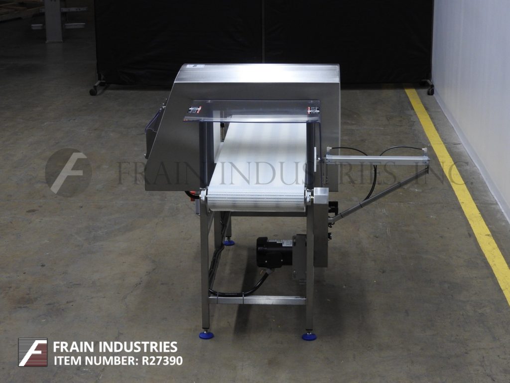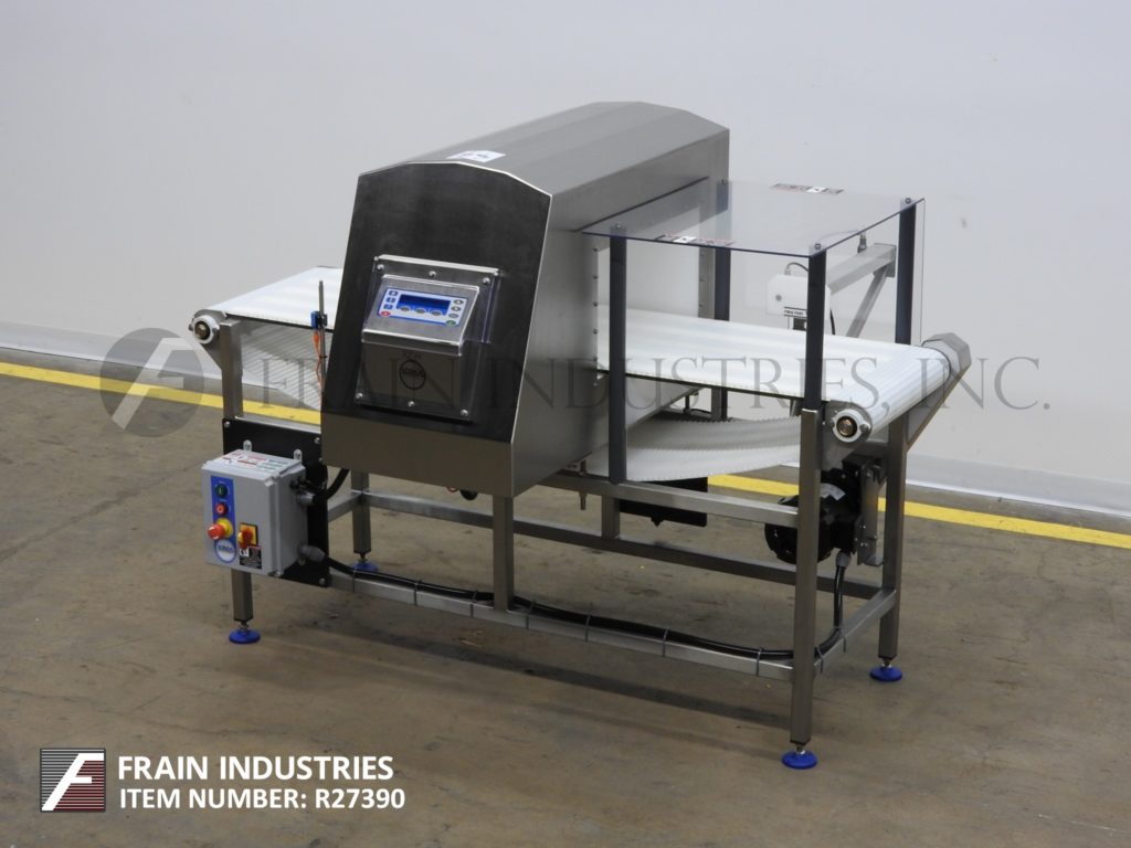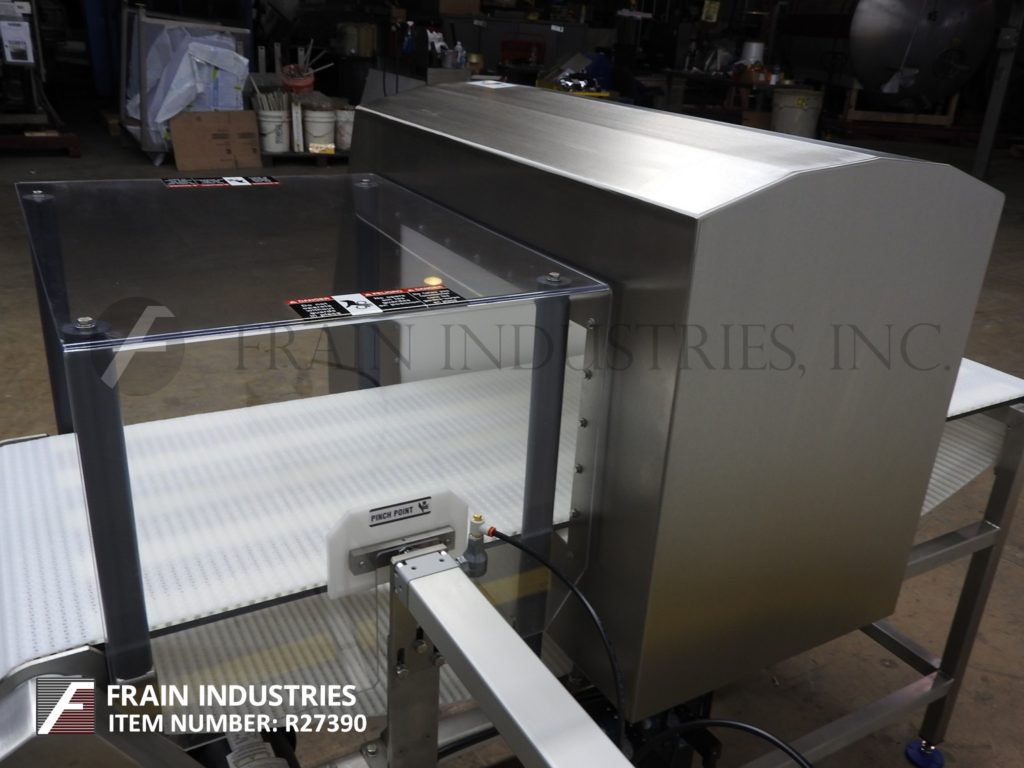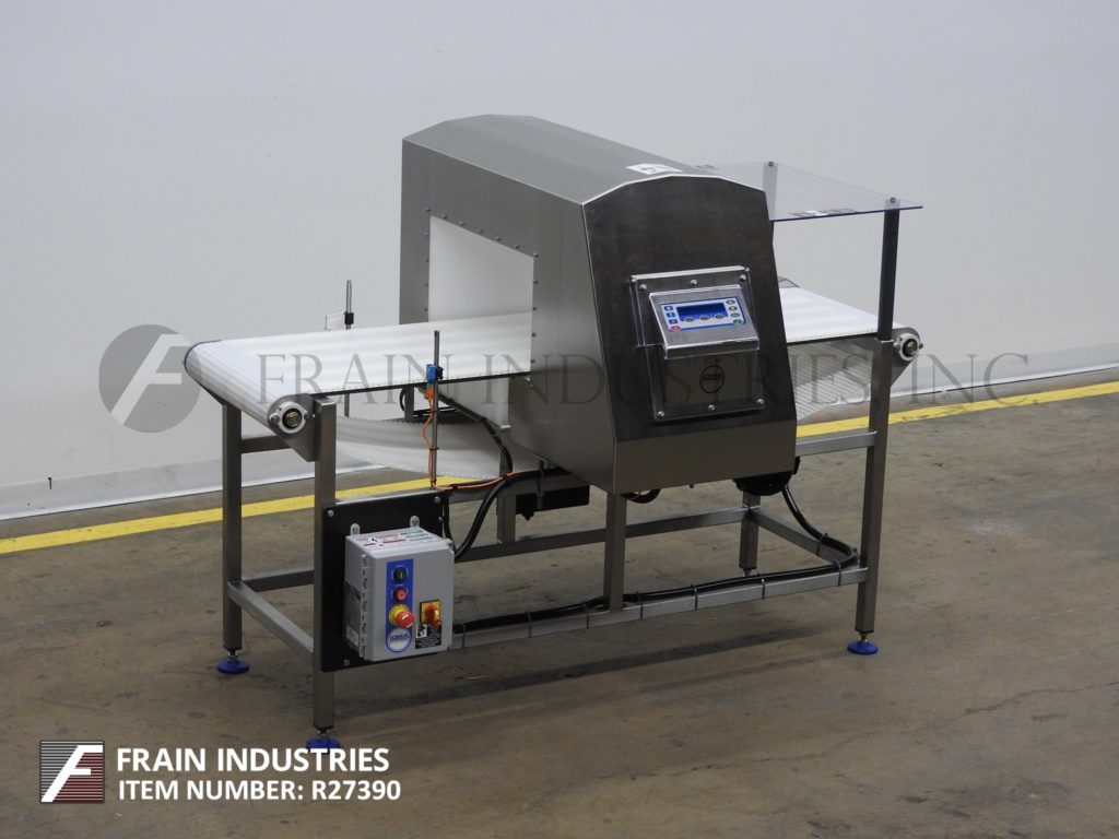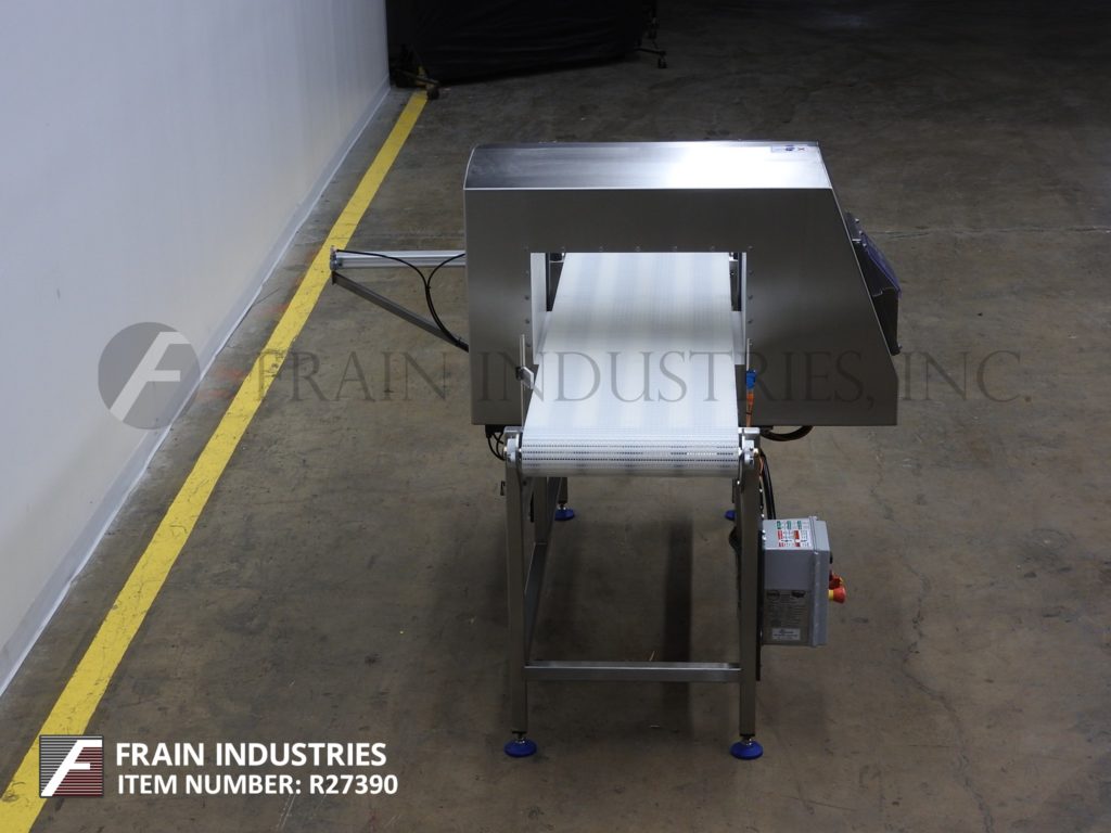 返回所有设备Loma, IQ3型,自动,不锈钢,每分钟产品数量的金属探测器-取决于材料和应用。总孔径:10¾英寸高度;21½”宽。敏感性:取决于运行的产品、容器和环境。配备19¾“宽x 70”长的白色Intralox产品传送带和冲压空气拒绝系统。控制面板有触摸板控制器和视觉显示。安装在一个不锈钢(4)腿基础框架。