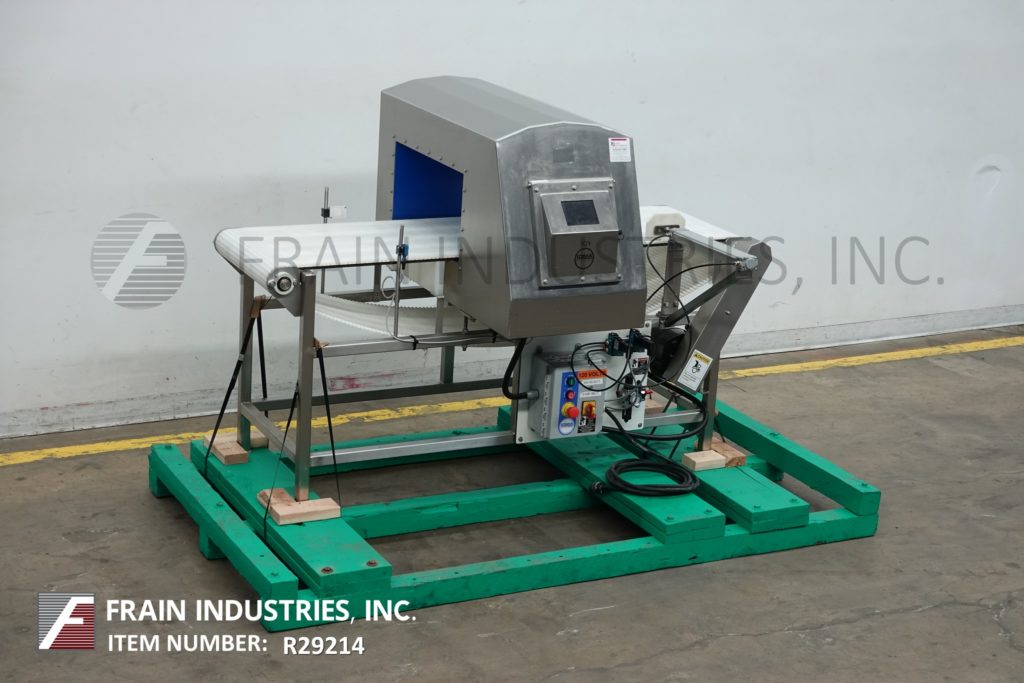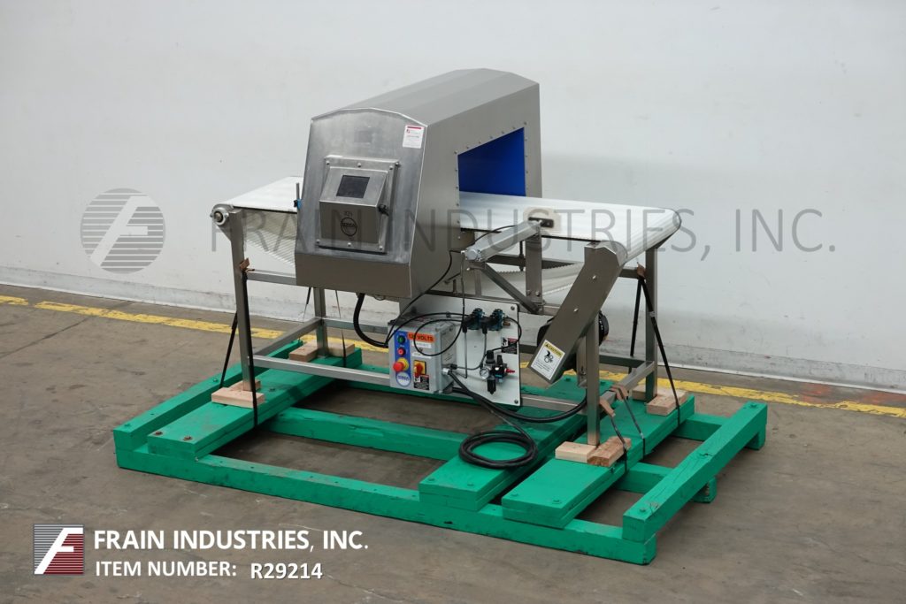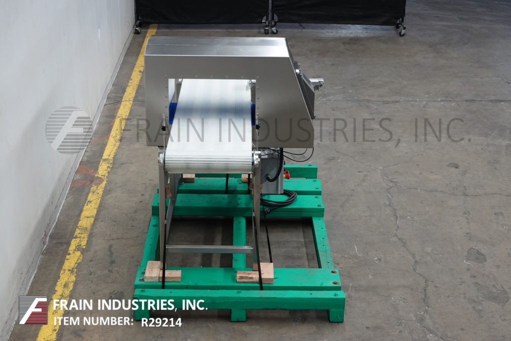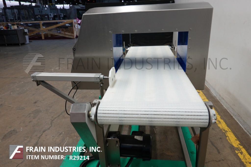 返回所有设备LOMA,型号IQ3 + E,自动,线,不锈钢,金属探测器,每分钟产品数量 - 取决于材料和应用。工作孔径:10½“高度;宽度为21½”。配备19英寸“宽X 70”的长白色Flex Link产品输送机,带臂拒绝。敏感性:取决于产品,容器和升温。触摸垫控制与显示屏。安装在(4)腿基框架上。