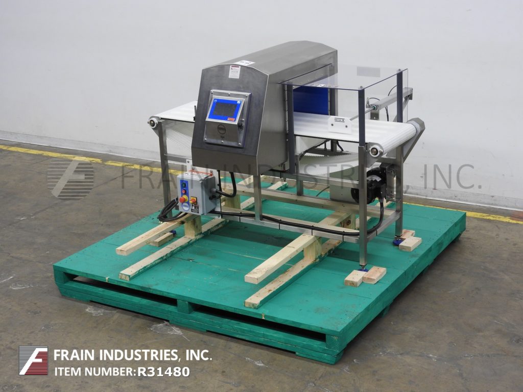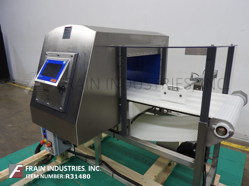 返回所有设备洛马,型号IQ4,自动,线,304不锈钢,金属探测器,每分钟产品数量 - 取决于材料和应用。工作孔径:10英寸“高度; 20英寸”。配备19½“宽X 70”的长内克拉内产品输送机,带有推挤臂剔除和安全防护。触摸板控制器,具有显示器和变速控制。敏感度:根据产品,容器和环境运行。温度范围:-10至+40°C,14至104°F以太网和USB。安装在(4)腿基不锈钢框架上,带锁定脚轮。