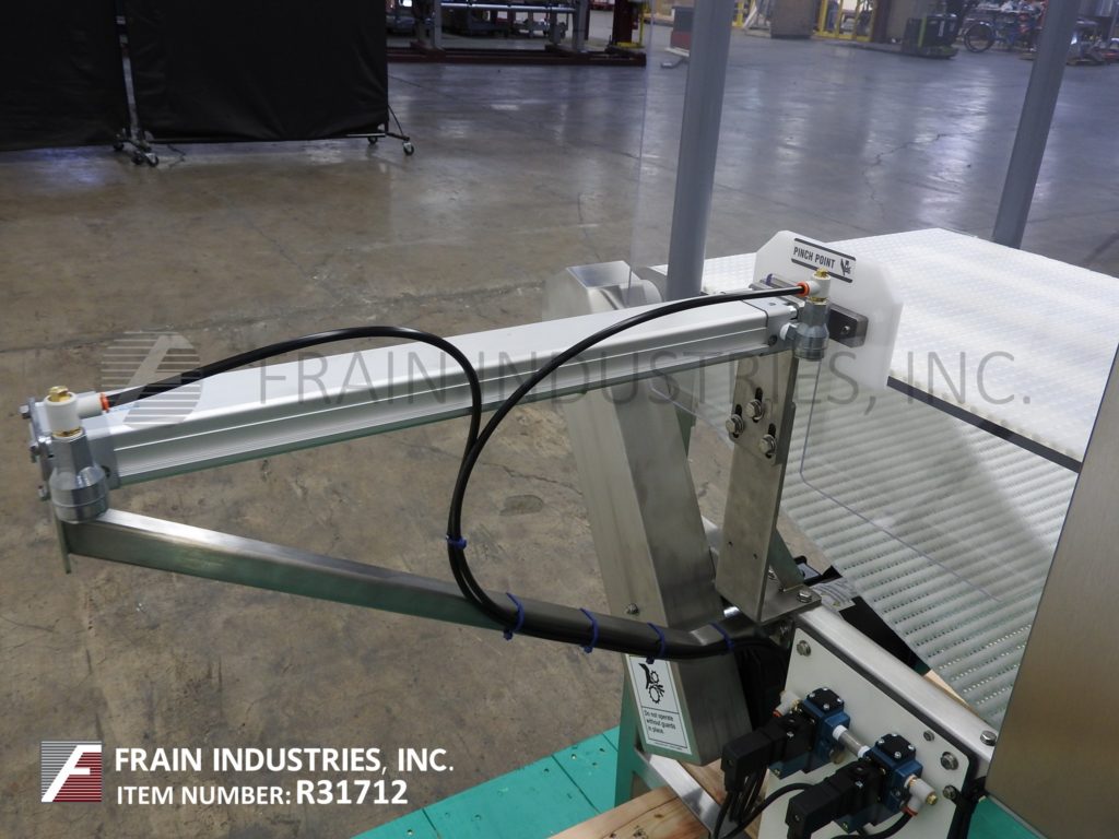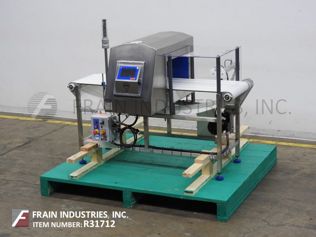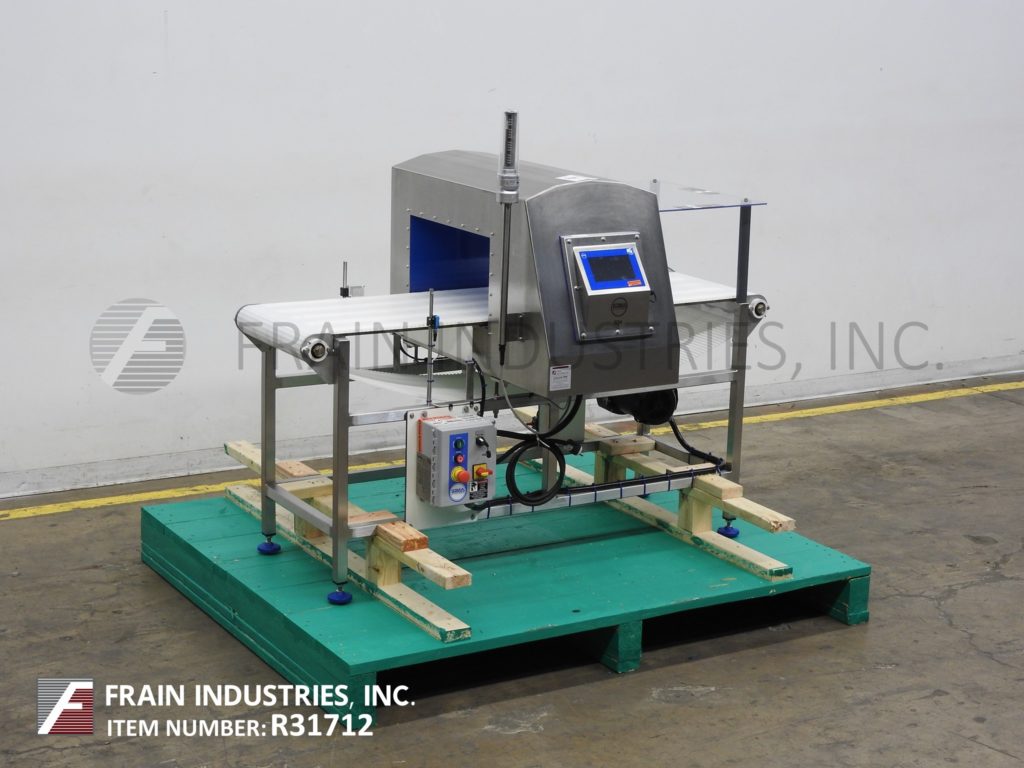 返回所有设备Loma, IQ4型触摸屏,自动,连续,不锈钢,金属探测器,每分钟可检测产品数量-根据材料和应用。304不锈钢结构。总光圈:高度12英寸;21-1/2”宽。工作光圈:高度11-1/2”;21”宽。配备19-1/2"宽x 72"长白色Intralox产品输送带34"至38"可调节进料和出料高度,单闸板臂拒绝,7"彩色触摸屏控制器与用户界面,启动,停止,e-stop按钮控制和信号塔。灵敏度:取决于所运行的产品、容器和环境。环境:干燥,偶尔有光线照射。温度范围:-10至+40℃,14至104℃。 Mounted on (4) leg stainless steel frame.