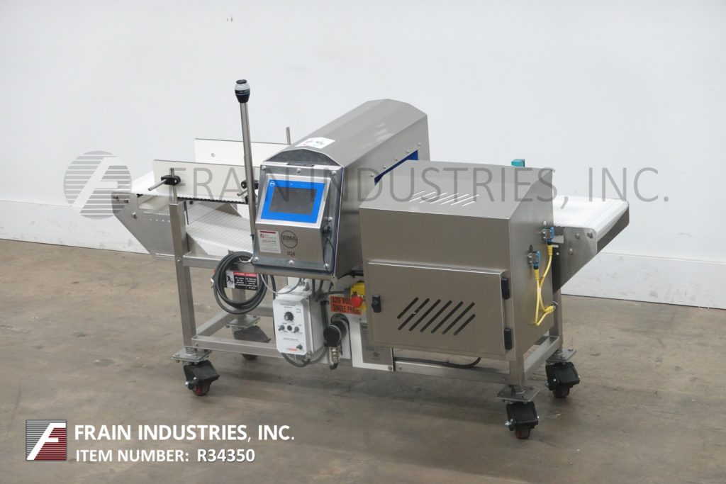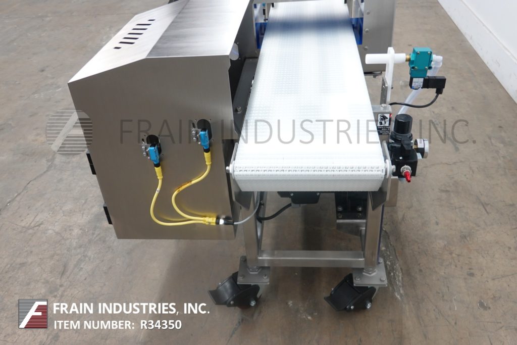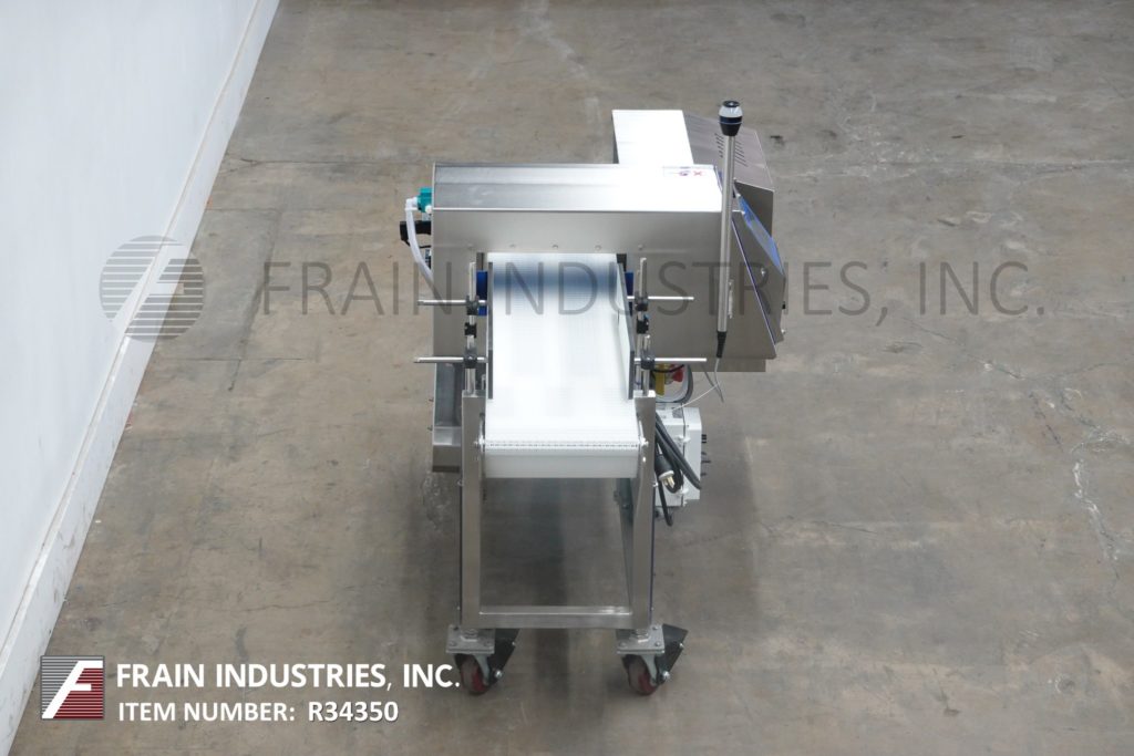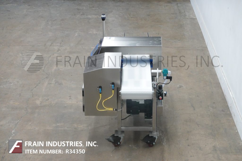 返回所有设备洛马,型号IQ4,自动输送通过金属探测器。每分钟产品数量-取决于材料和应用。可用孔径:4¾英寸高度;13¾”宽。配备70“长x 11¾”宽Intralox带式输送机,吹气拒绝和30“进料和放电高度。灵敏度:取决于所运行的产品、容器和环境。控制面板有触摸屏人机界面。安装在带有脚轮的(4)腿基础框架上。
