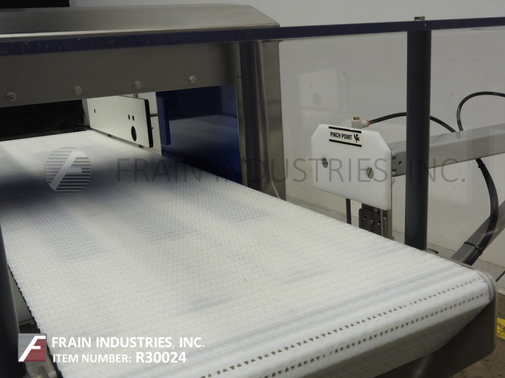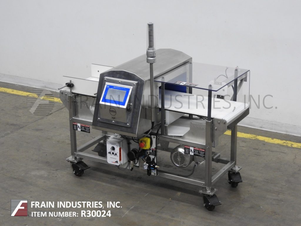 返回所有设备Loma, IQ4型,自动,直线,不锈钢,金属探测器,每分钟的产品数量-取决于材料和应用。工作光圈:高度6”;17”宽。配备15¾“宽x 60”长的Intralox产品输送机,推臂剔除和变速控制。敏感性:取决于产品、容器和运行环境。触摸屏控制与显示。安装在(4)腿基础框架上。