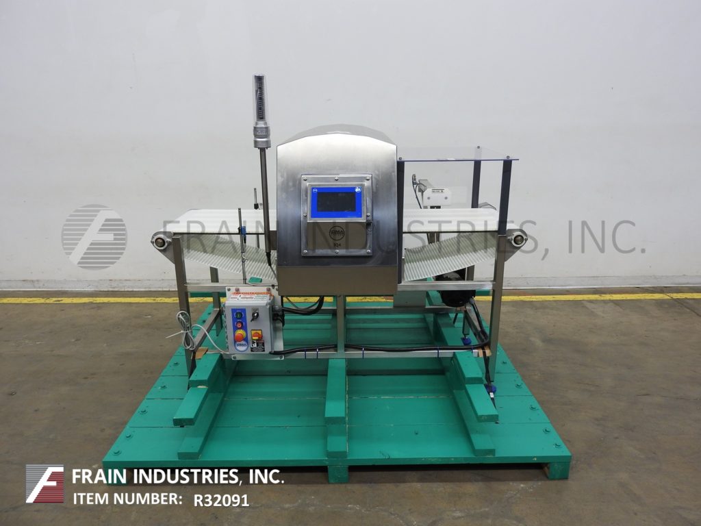返回所有设备Loma, IQ4型触摸屏,自动,在线,不锈钢,金属探测器每分钟产品数量-取决于材料和应用。304不锈钢结构。总光圈:高度12英寸;21-1/2”宽。工作光圈:10-1/2”高度;19-1/2”宽。配备19-1/2“宽x 72”长的Intralox产品输送带,可调节饲料和排放高度34“到38”,与柱塞臂拒绝,7“彩色触摸屏控制器与用户界面,启动,停止,e-stop按钮控制和信号塔。敏感性:取决于运行的产品、容器和环境。环境:干燥,偶尔轻洗。温度范围:-10至+40℃,14至104℃。支持以太网和USB。 Mounted on stainless steel frame with height adjustable legs.
