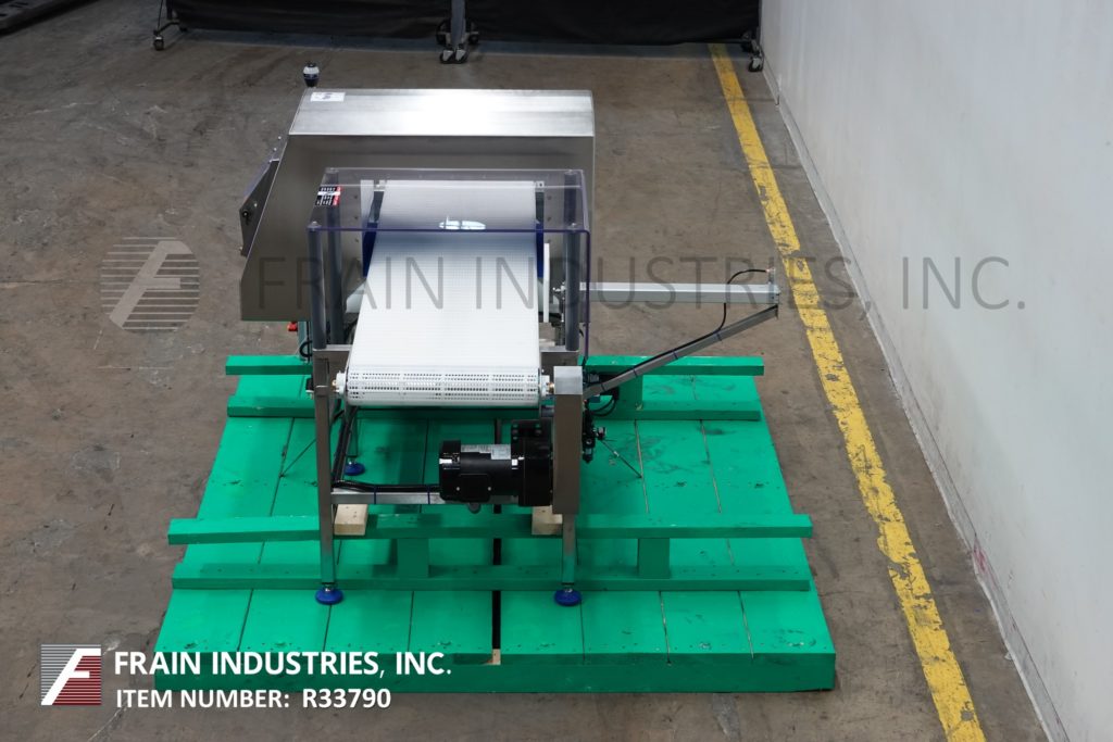 LOMA,型号IQ4触摸屏,自动,线,不锈钢,金属探测器,每分钟产品数量 - 取决于材料和应用。304不锈钢结构。总孔径:12“高度; 21-1 / 2”宽度。工作孔径:10-1 / 2“高度;宽度为19-1 / 2”。配备19-1 / 2“宽X 72”长内克拉内产品传送带,并且34“至38英寸”至38“,可调节进料放电高度,RAM ARM拒绝,7”彩色触摸屏控制器,具有用户界面,开始,停止,e-Stop按钮控制和信号塔。敏感性:取决于产品,容器和环境的运行。环境:干燥和偶尔的浅点冲洗。温度范围:-10至+40°C,14至104°F.以太网和USB有能力的。安装在不锈钢框架上,高度可调腿。