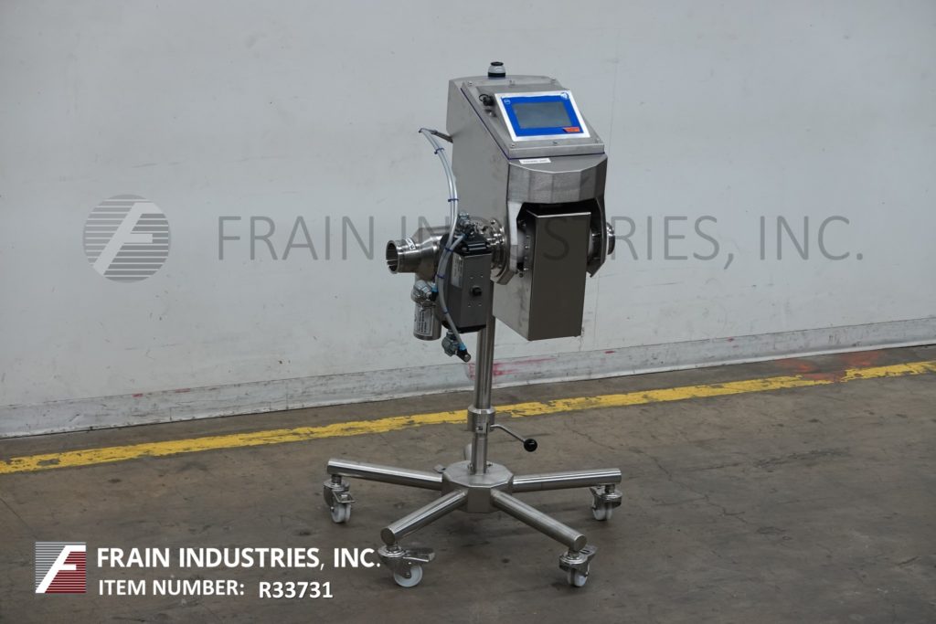 返回所有设备Loma, IQ4型,不锈钢,泵送金属检测系统,适用于管道输送产品。每小时的生产量-取决于材料,应用和机器配置。敏感性:取决于运行的产品、容器和环境。配置4½" x 4½"孔径,3½"OD / 3"ID三钳式连接和气动转向阀拒绝。安装在带脚轮的不锈钢框架上。
