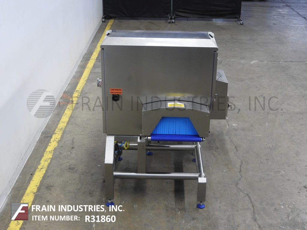 返回所有设备Loma,型号X5 500,不锈钢,X射线检测系统。每分钟产品数量–取决于材料、应用和加工配置。304不锈钢,干擦式结构。总孔径:18英寸宽;高8",;32“腔室长度。二极管尺寸:0.8毫米。X射线输出:150W。IP等级:IP66。工作温度范围:41°F至77°F。产品灵敏度和重量:取决于产品、容器和运行环境。配备18¾英寸宽x 42英寸长的食品级防静电输送带,速度高达每分钟75英尺,19½英寸宽x 34英寸长的带机械废料和收集箱的Intralox型废料输送带。带有操作员界面的触摸屏控制器具有矩形检查窗口,具有多级密码访问功能,并具有数据日志功能,可进行x射线打开、关闭、复位和启动、停止、紧急停止控制。安装在高度可调(4)支腿不锈钢基架上。
