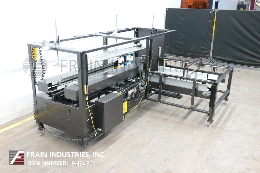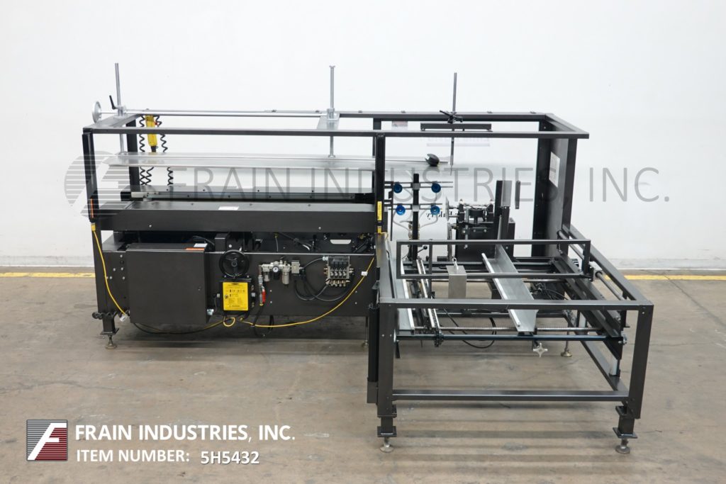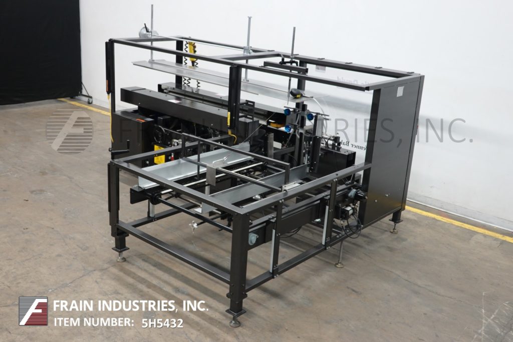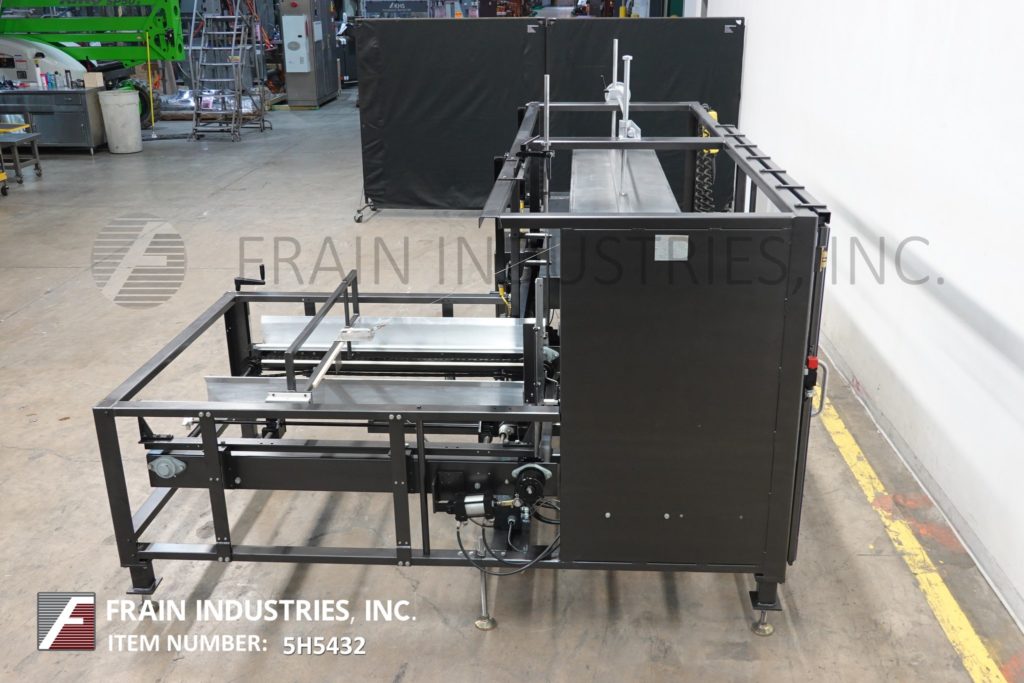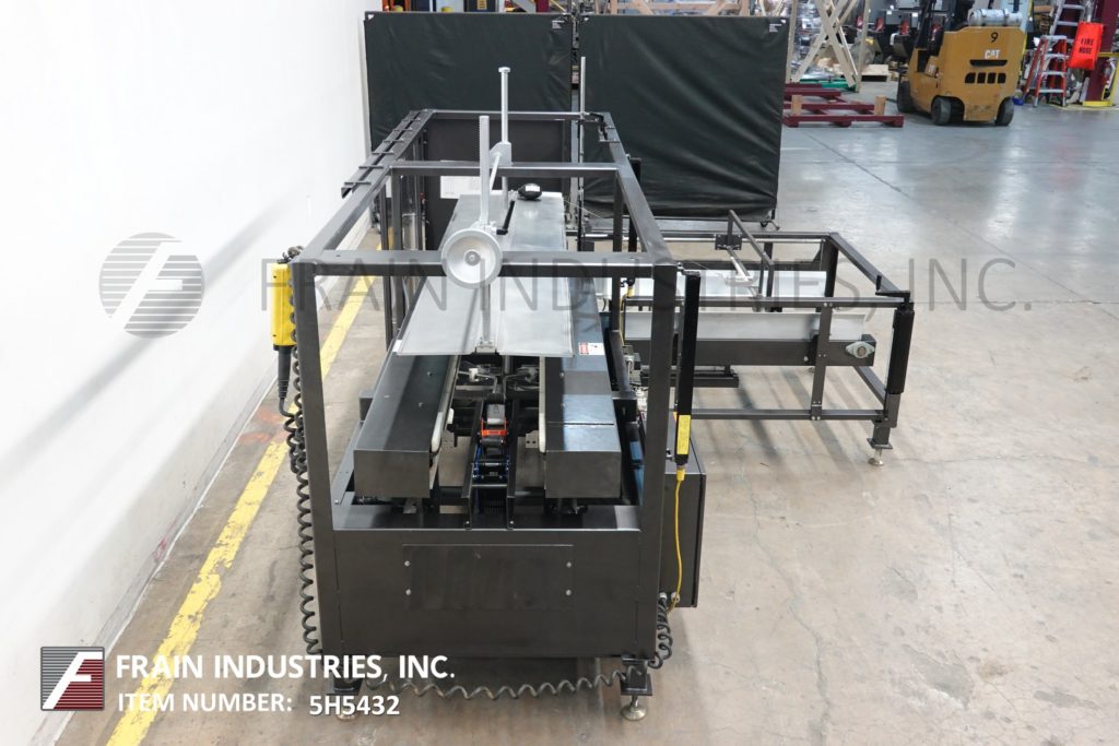 返回所有设备Loveshaw Model CF40,自动案例前者和底部锥度从5到20个橱柜/分钟 - 取决于材料和应用。案例尺寸范围:长度为7“至24”;6“到16”的宽度;4“至16”高度。配备空白盒杂志,吸引杯盒竖琴和成型部分,带有侧面驱动和3“底部磁带头的动力凸耳链,带有低料斗和低磁带报警器和手持式控制器。安装在带脚轮的重型基础框架上。