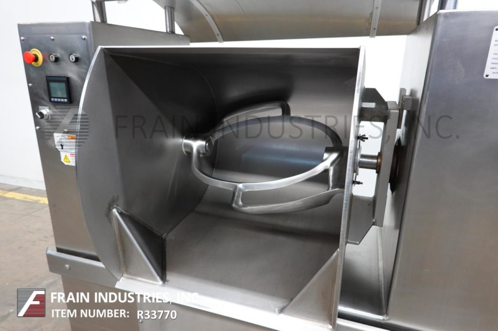 返回所有设备MANGA,型号300L-2D1,304不锈钢单臂SIGMA风格搅拌机。工作能力为10½英尺(480磅)和室尺寸,长度为:28英寸;28“宽度;32“深度。配备Sigma Mix ARM,15 /7½HP双速驱动和电动倾斜放电。控制面板具有触摸屏控制器和e-stop。安装在重型不锈钢框架上。用于温和,彻底混合的厚重面包,饼干面团和专业产品。