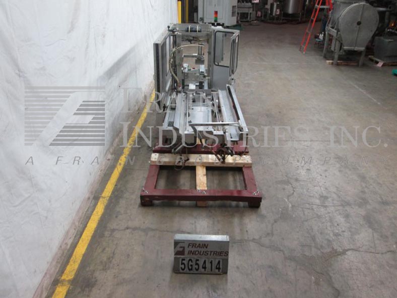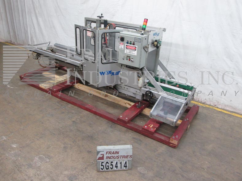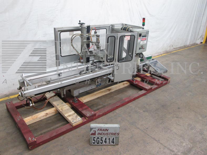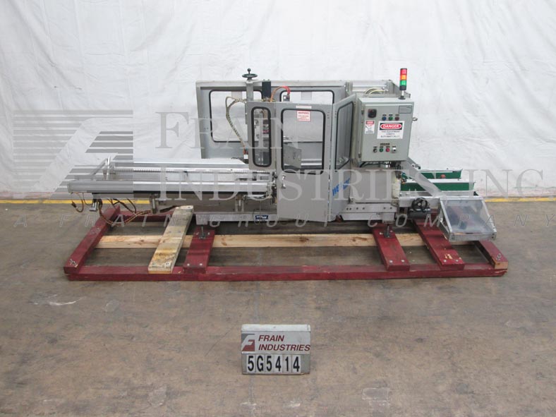 返回所有设备WFT型,自动,内联箱安装和底部胶带封口机。每分钟5 - 15个病例-取决于材料和应用。外壳尺寸范围:6"至24"长度;宽度为5"至17";3½“到16½”的高度。配备70"长动力空白盒杂志,往复销和圆壳形成板,小和主要皮瓣关闭,手曲柄高度和宽度可调,案件推杆,2" Dekka磁带头垂直磁带卷和32"长双侧皮带放电部分。控制面板有A/B plc与按钮控制慢跑,启动,停止和e-停止。包括统计灯条和安全防护。安装在(4)带有调平支腿的支腿底座框架上。