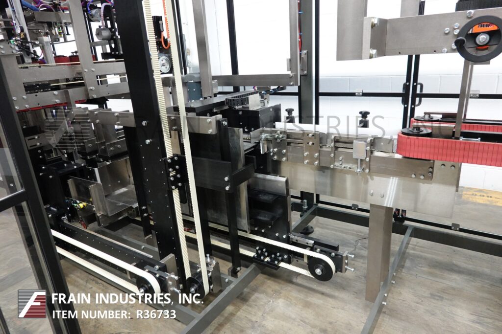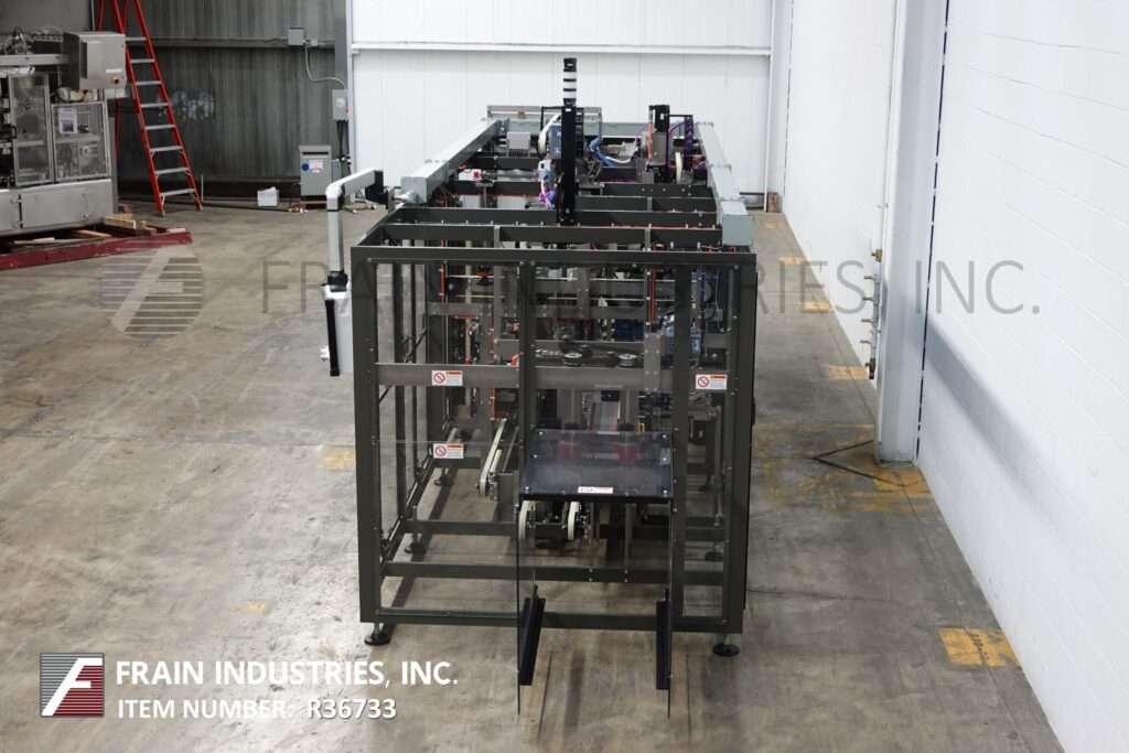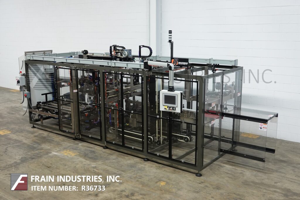 回所有设备massman模型BLCP自动不锈钢封装器、产品堆叠器、底层装箱机和热熔胶封装器,每分钟产品和案例数-视材料应用而定案例大小范围:逐项应用装有96'长x11-3/4'宽产品进料传送器,60'长链自动空白杂志,(2)吸杯回接n位置,案例传送器带产品下栈并自底负载设计,NordsonProBlue热胶合件并拉近Seko和手轮调整,双36'长x3'宽压缩和卸载器控制面板有A/BPLC和A/B回旋臂视图带HMI并用statis光栏启动、控制电源、循环停止和e-stop按键挂上火药大衣聚酯树脂完成管状框架安全门看守