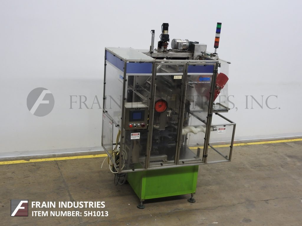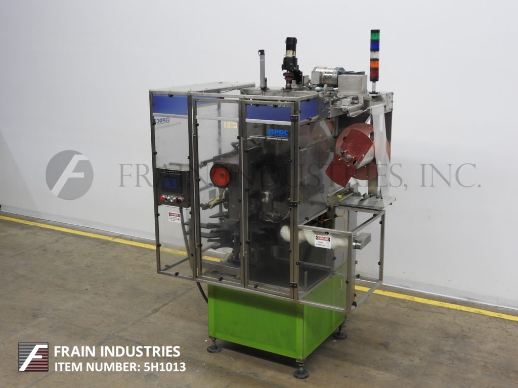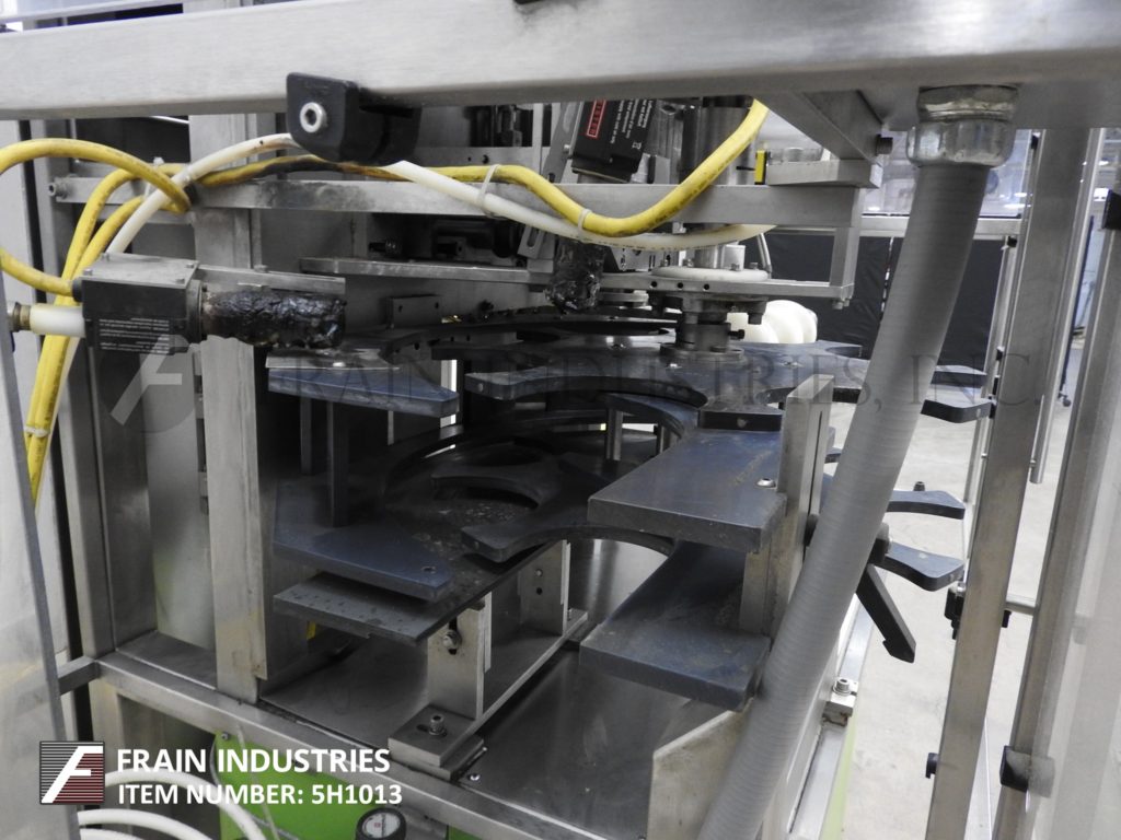 返回所有设备PDC, F-200型,自动领带。额定每分钟10到100个容器-取决于材料,应用和机器配置。带尺寸范围:直径2½”到6¾”,高度1”到2.3”。铺平:63mm至242mm。配备24"产品进给蜗杆,22"直径星轮容器分度,动力放纸站水平穿孔刀,垂直穿孔轮,静电消除,下拉式涂料器,(2)莱斯特预收缩加热器和联锁安全防护装置。控制面板带有AB控制器,Pro-Face触摸屏显示,运行/点动开关和E-stop。