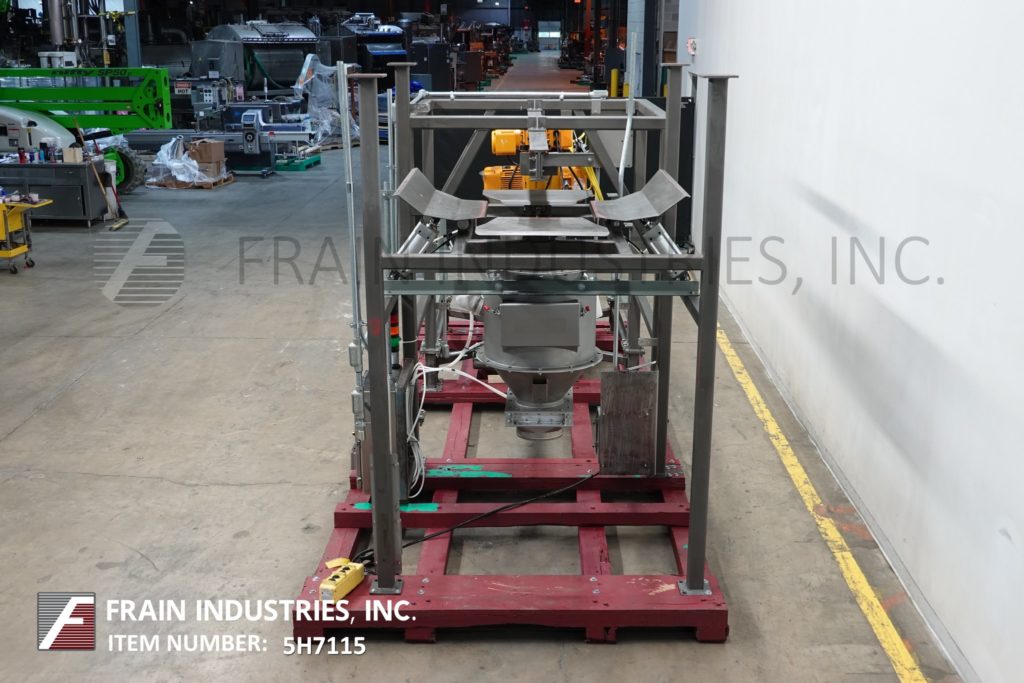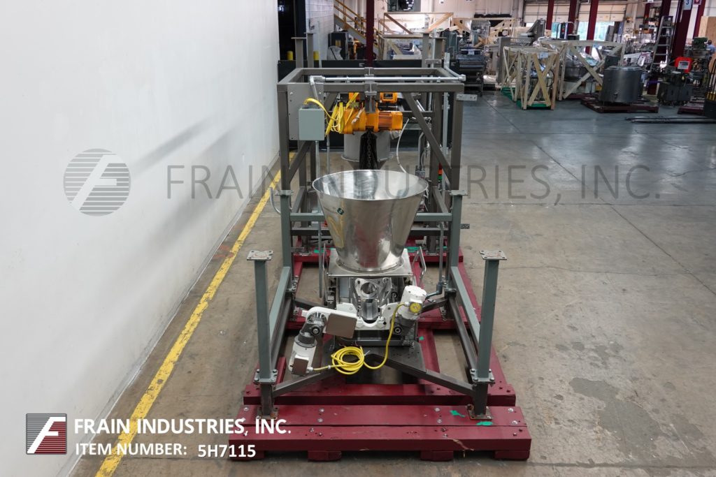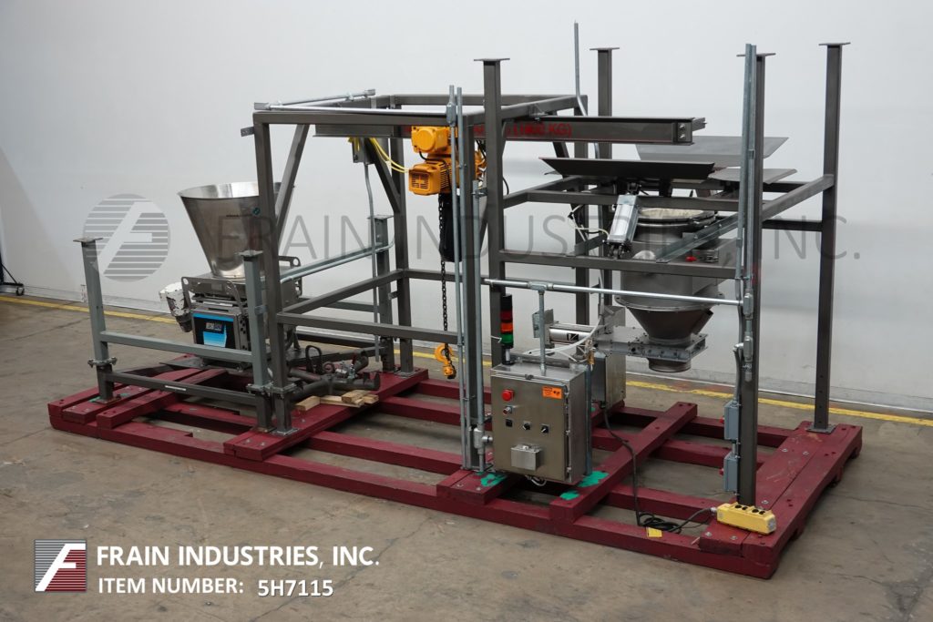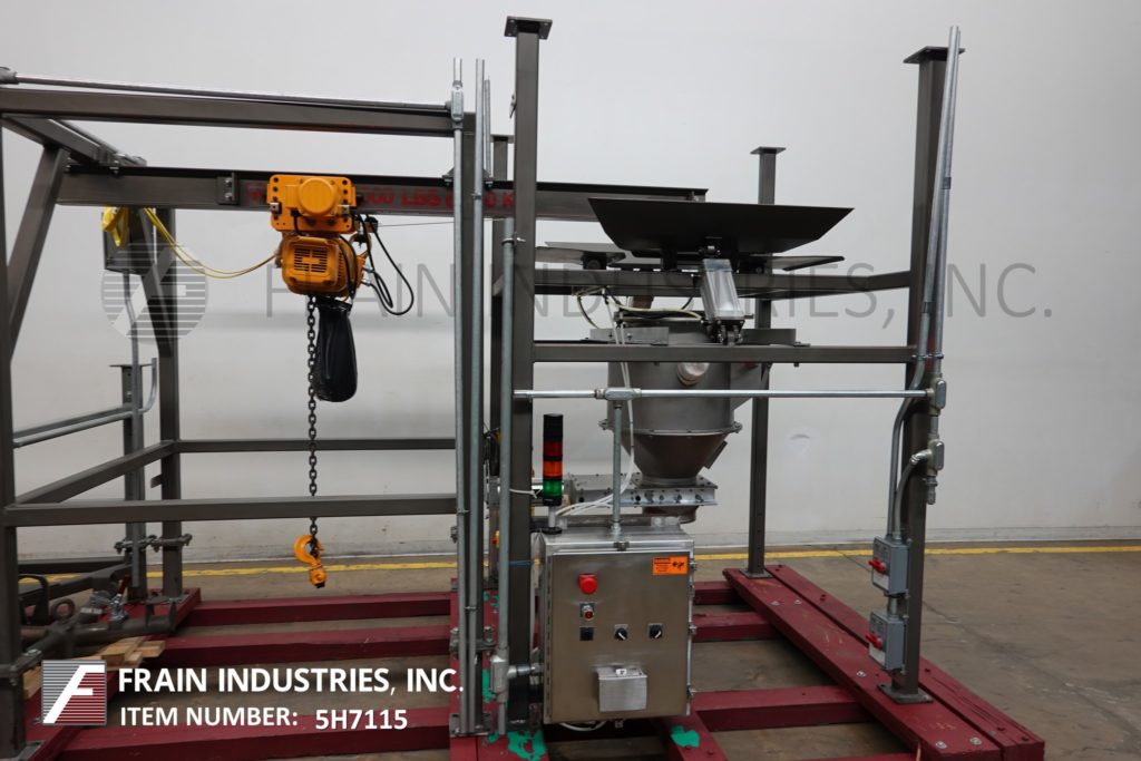 返回所有设备大袋,超级大袋卸载系统额定4,000磅的容量与数量的大袋每小时-取决于材料,应用和操作灵巧。重型箱管结构设计有104"长I-beam延伸41"超越框架34"长x 34"宽蜘蛛提升袋附件,允许提升各种大小的散装袋。哈林顿2吨(4000磅)容量的动力提升机和小车,带法兰安装的产品接收室,带按摩桨和Schenck Mecha Tron flo速率给料机。